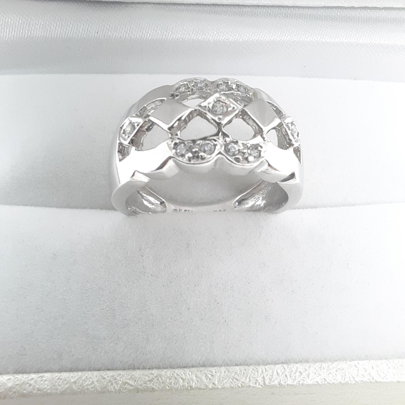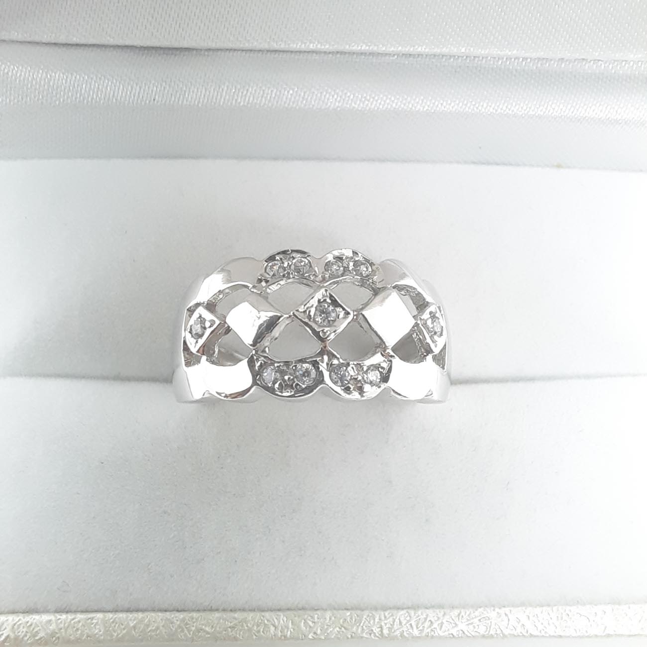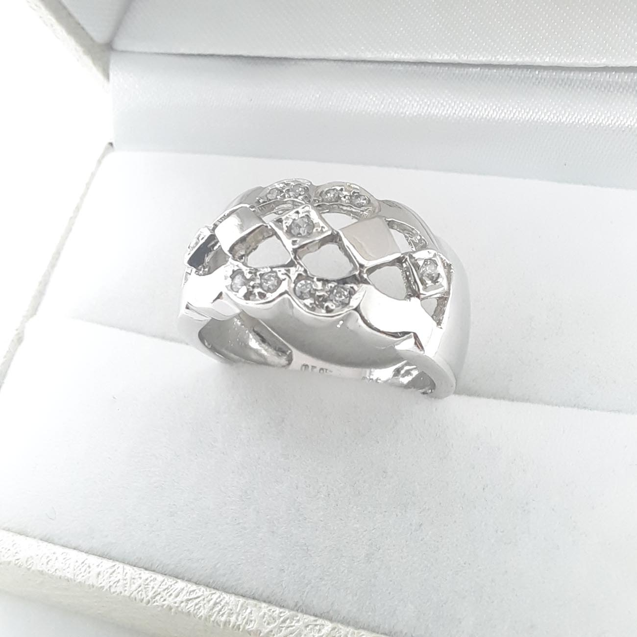 Μοναδικής ομορφιάς δαχτυλίδι , βαρύτιμο και πολυτελές, με περίτεχνο σκάλισμα, άφθονα λευκά ζιργκόν, φαρδιά λουστρέ επιφάνεια, από λευκόχρυσο 14 καρατίων. Ιδανικό δώρο αγάπης!