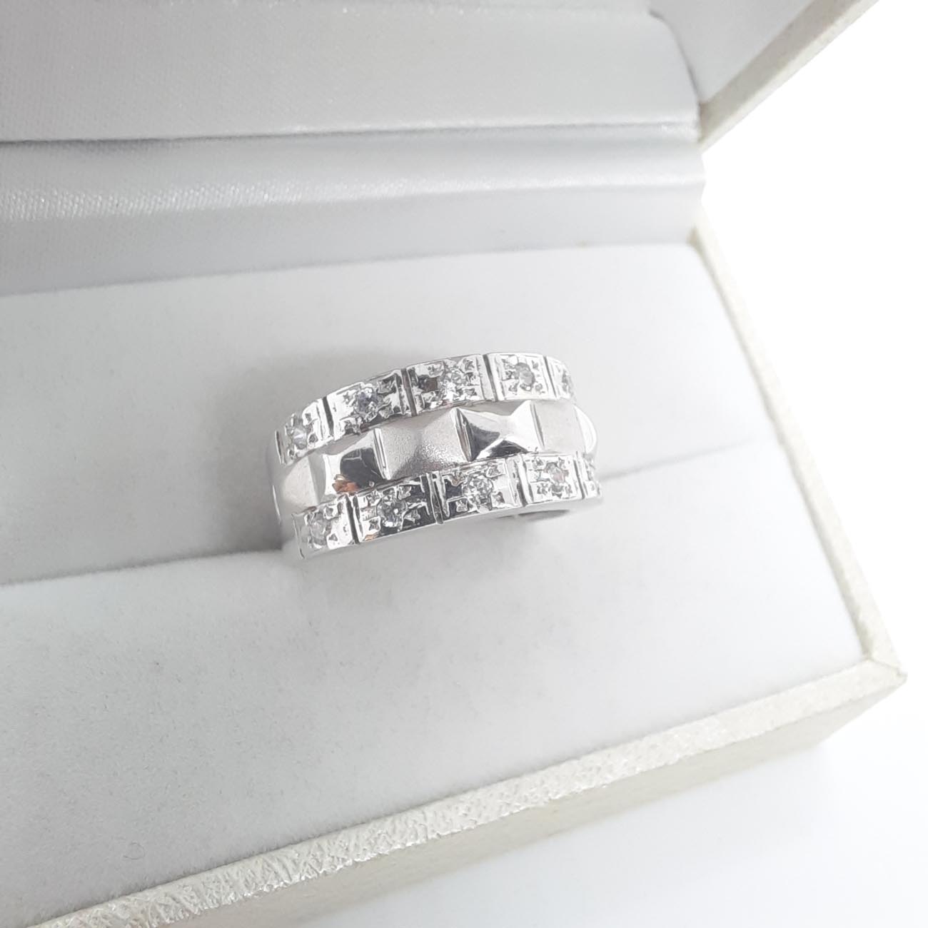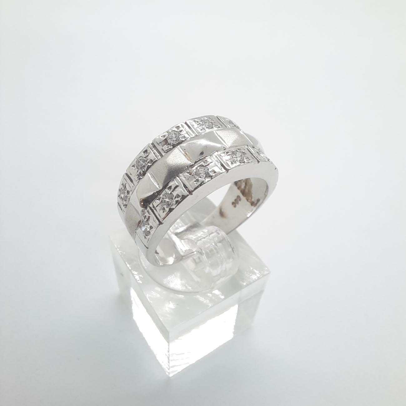 Υπέροχο βαρύτιμο δαχτυλίδι , συνδυασμός αριστοκρατικής όψης και δυναμικού χαρακτήρα, με δύο σειρές λευκά ζιργκόν, λουστρέ γάμπες και ανάγλυφα παραλληλόγραμμα που εναλλάσσονται με ματ και λουστρέ επιφάνειες. Ιδανικό κόσμημα για αρραβώνα, γάμο, επέτειο , τέλειο δαχτυλίδι αφοσίωσης και αγάπης.