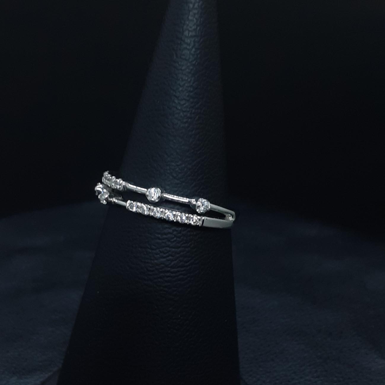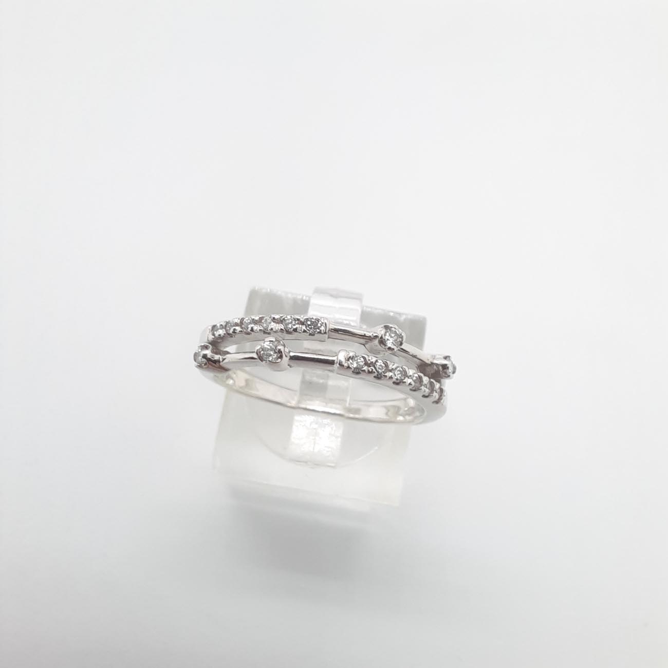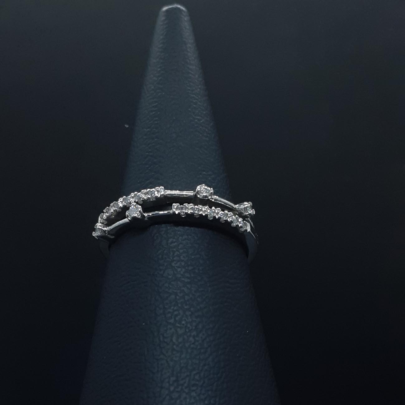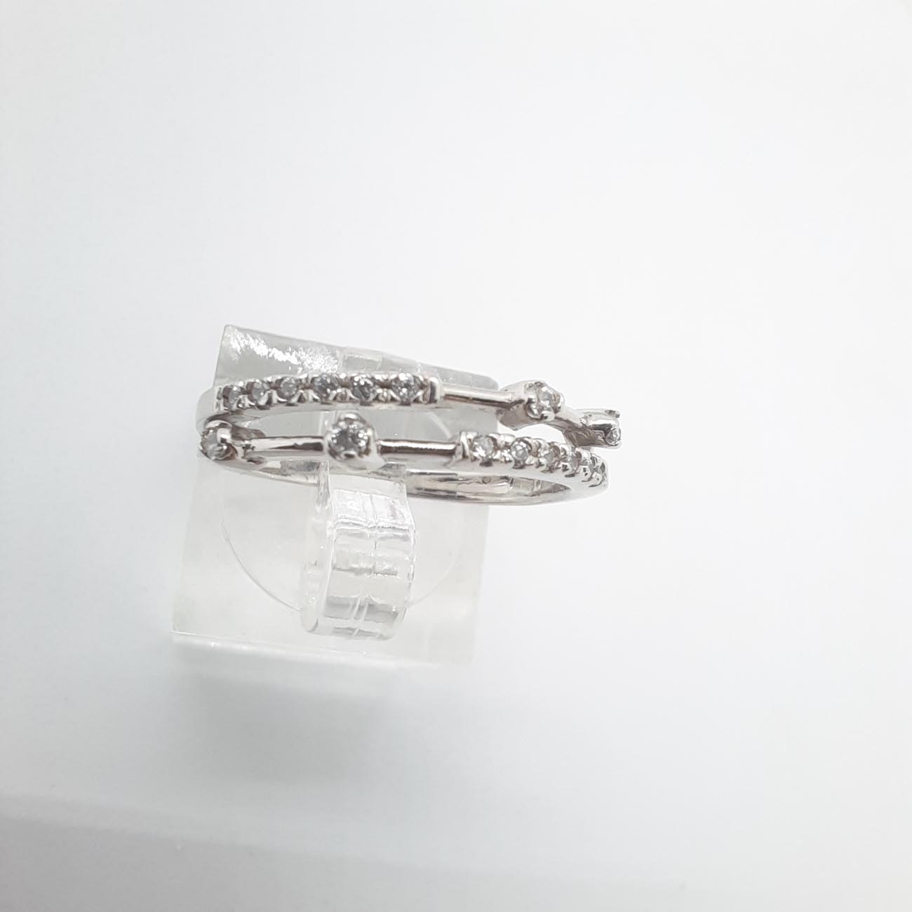 Ένα υπέρκομψο λευκόχρυσο δαχτυλίδι 14 καρατίων με 4 λευκά ευδιάκριτα ζιργκόν και άφθονα μικρότερα ζιργκόν στην μπροστινή όψη, με φινετσάτη, αριστοκρατική, λεπτή εμφάνιση που δεν θα το αποχωρίζεστε ποτέ από το χέρι σας!