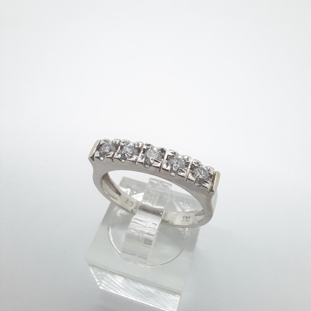 Λευκόχρυσο δαχτυλίδι 14 καρατίων με εκτυφλωτικά λευκά ζιργκόν στην μπροστινή όψη, ένα κόσμημα που ξεχωρίζει για τον δυναμισμό του και την rock glam αισθητική.