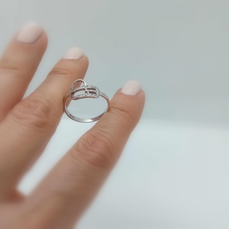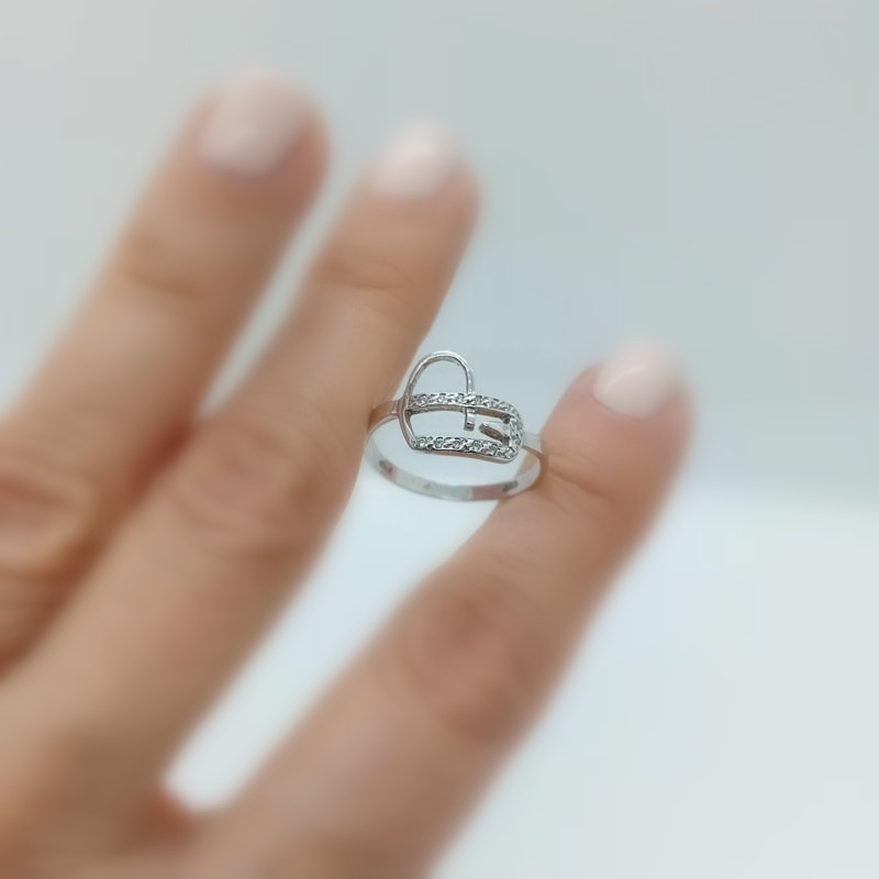 Πολύτιμο λευκόχρυσο δαχτυλίδι 14 καρατίων με περίτεχνη καρδιά σε μοντέρνο design με άφθονα λευκά ζιργκόν .Ένα διαχρονικό κόσμημα με πολύ συναίσθημα!