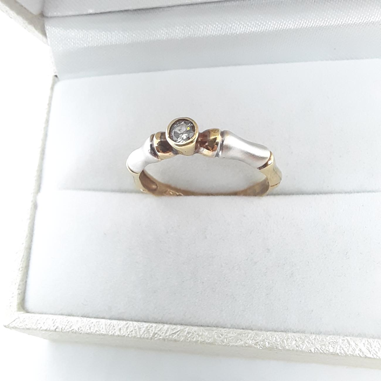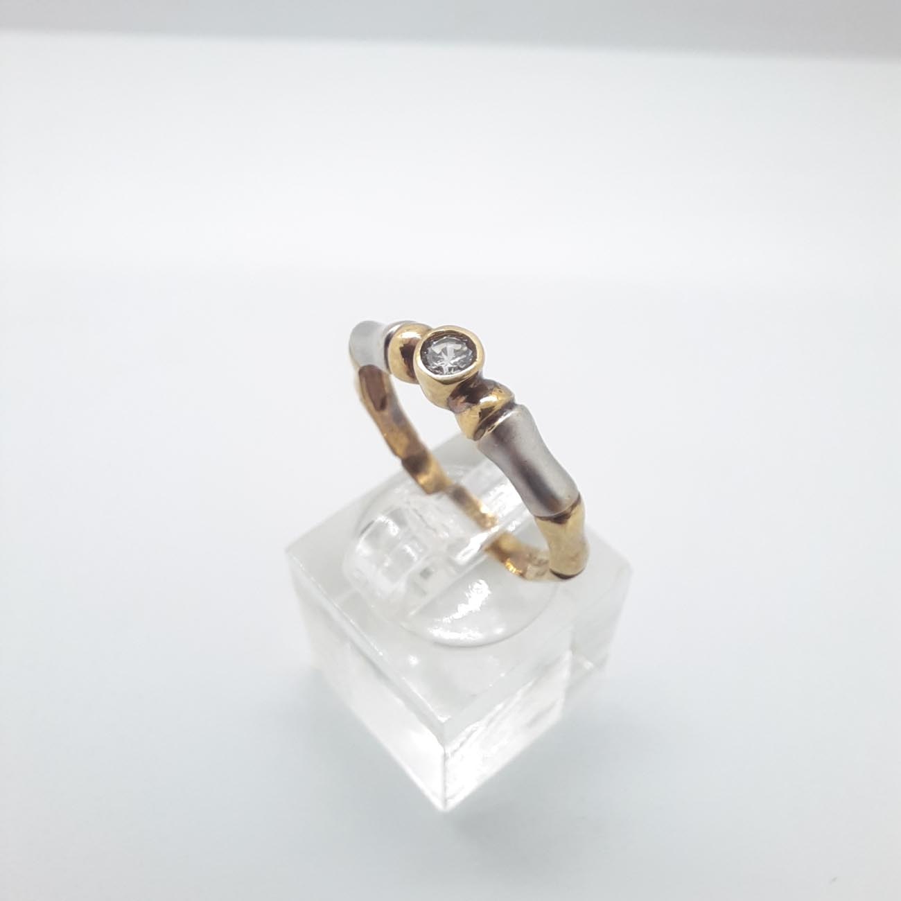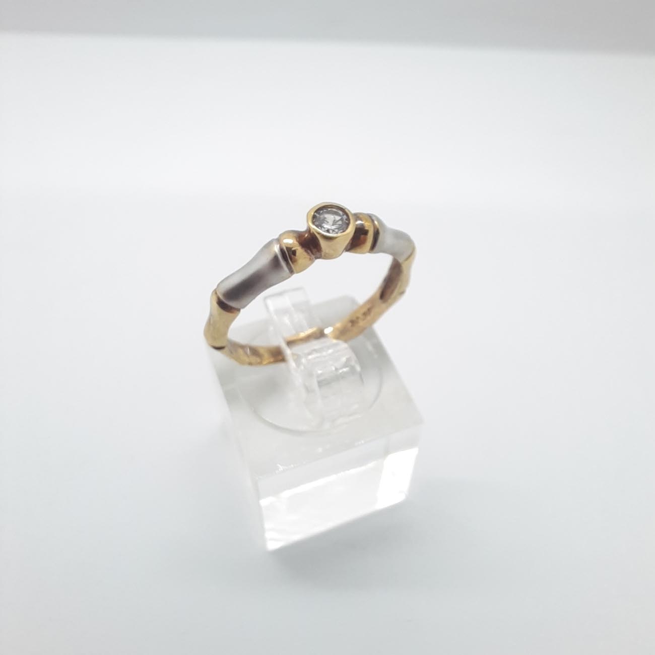 All time classic δαχτυλίδι σε διακριτική γραμμή, μοντέρνο και πολύτιμο, μινιμαλιστικής αισθητικής, συνδυασμός ματ και λουστρέ όψης, 14 καράτια και μεγάλο λευκό ζιργκόν στο κέντρο.