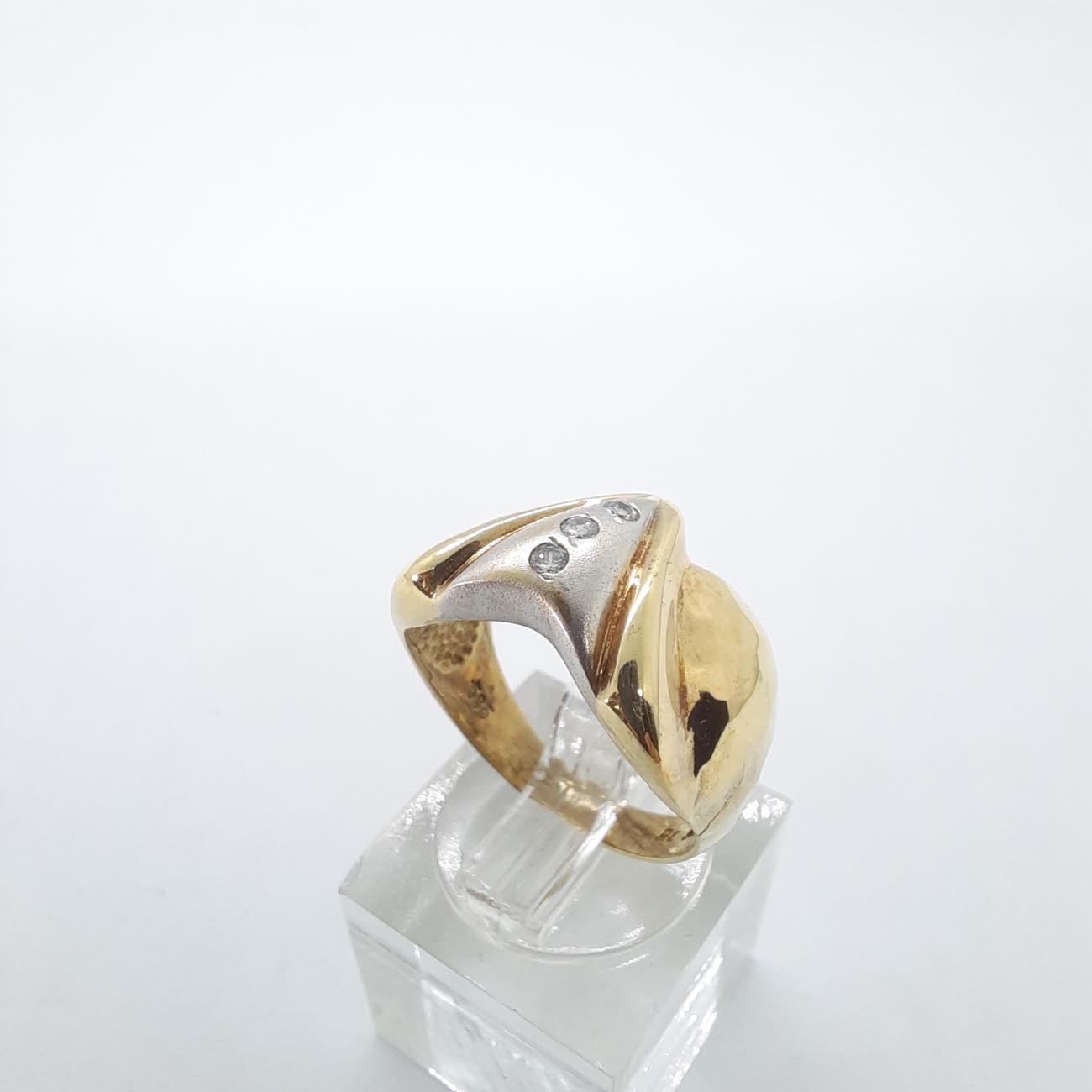 Επειδή είσαι γυναίκα υψηλών απαιτήσεων, σου αξίζει ένα εντυπωσιακό και βαρύτιμο κόσμημα, από χρυσό 14 καράτια, σφυρήλατη φαρδιά επιφάνεια, με 3 λευκά ζιργκόν, ιδανικό δώρο αγάπης.