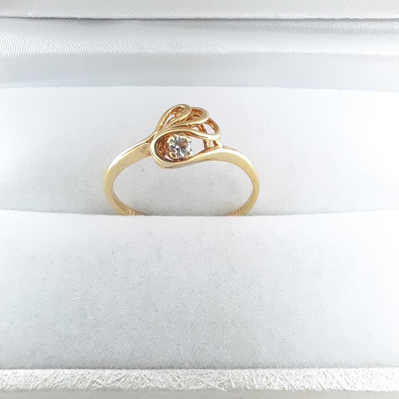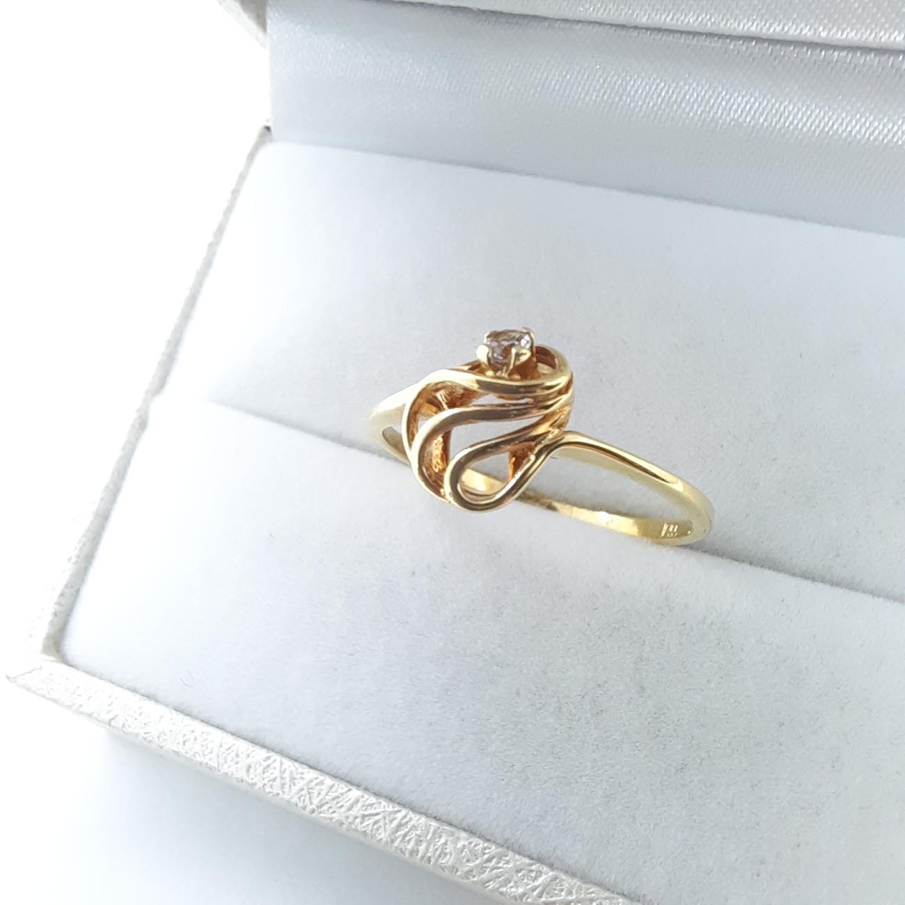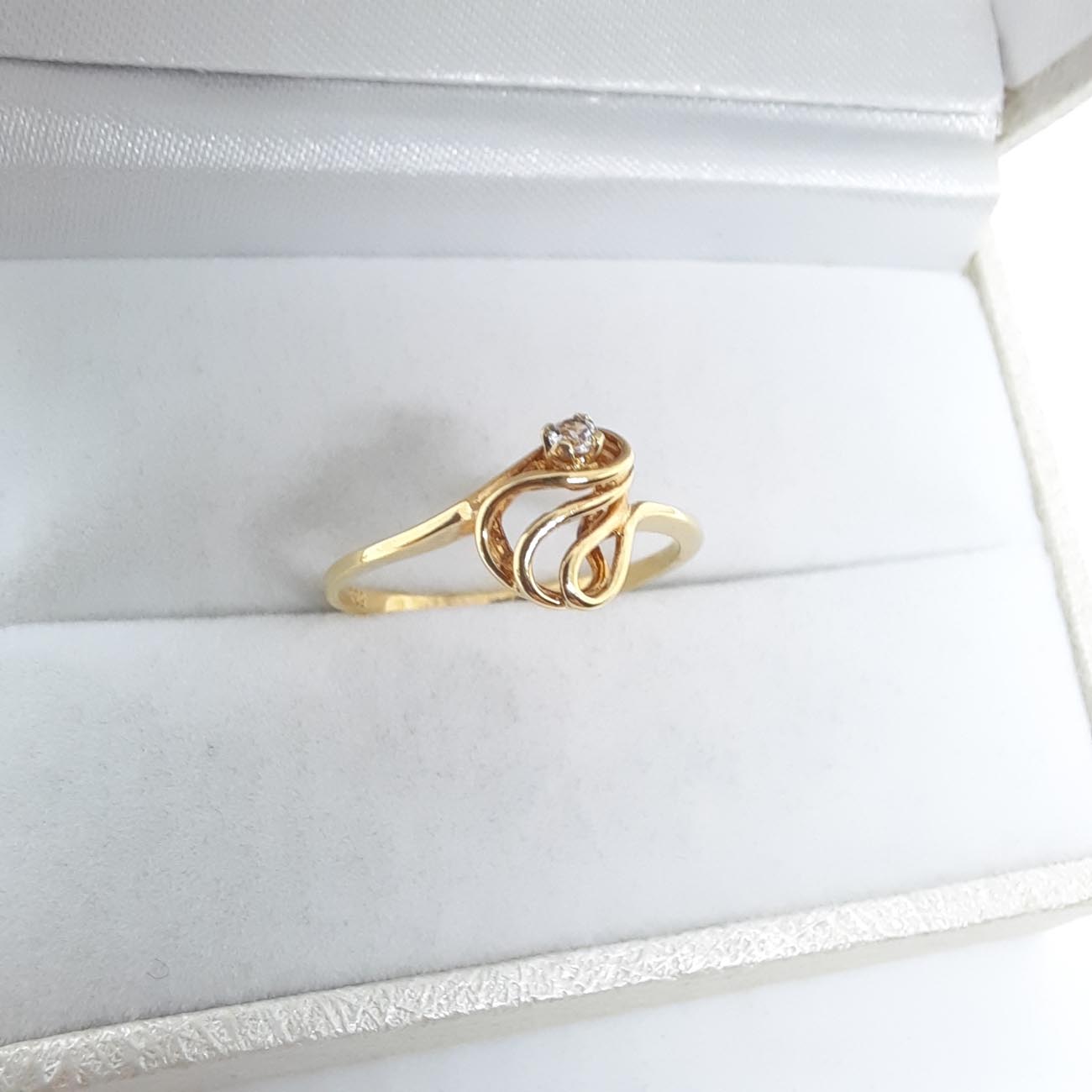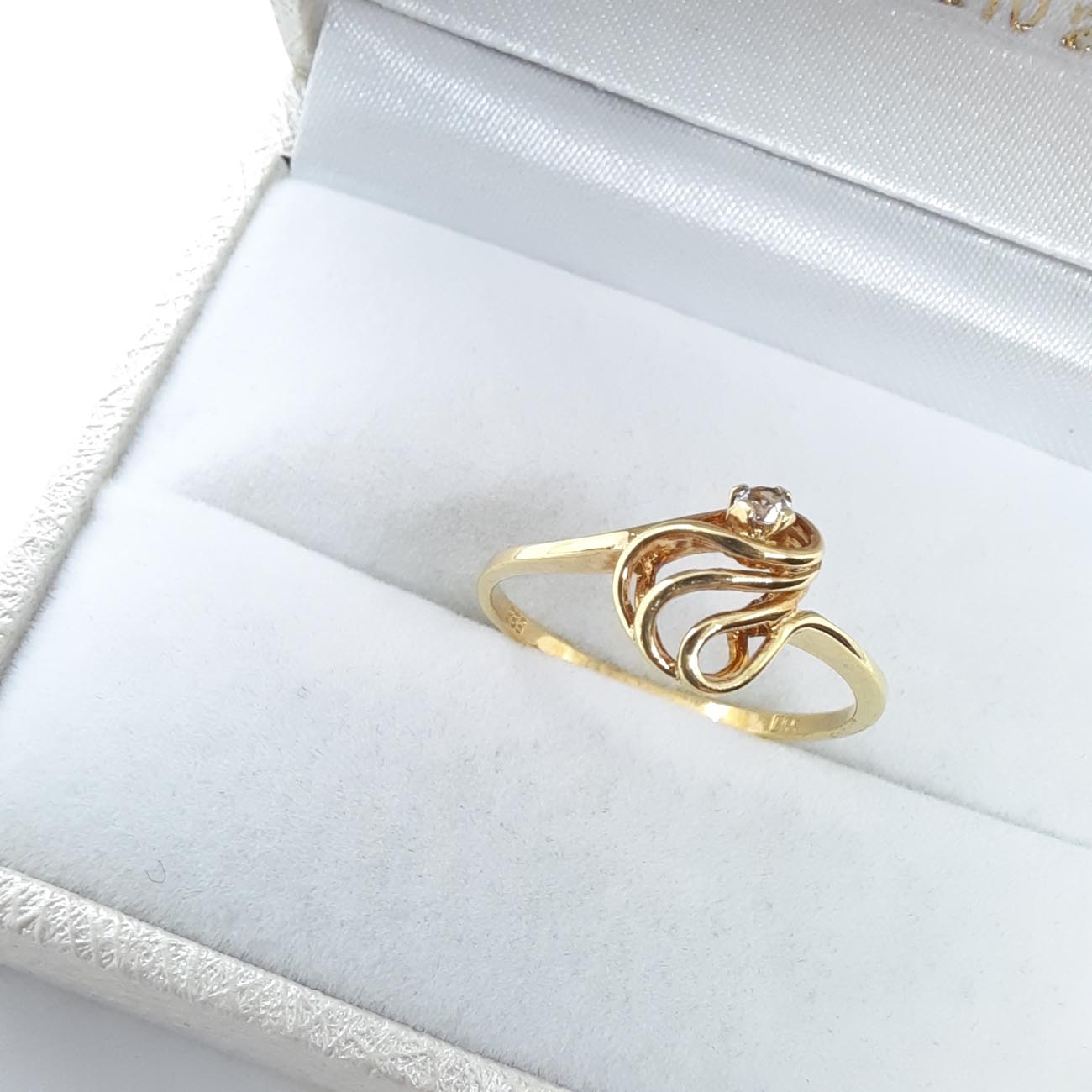 Φινετσάτο λεπτεπίλεπτο δαχτυλίδι από χρυσό 14 καρατίων, με design που θυμίζει κοχύλι, με ένα λευκό ζιργκόν, ιδιαίτερα ρομαντικό κόσμημα διαχρονικής ομορφιάς.
