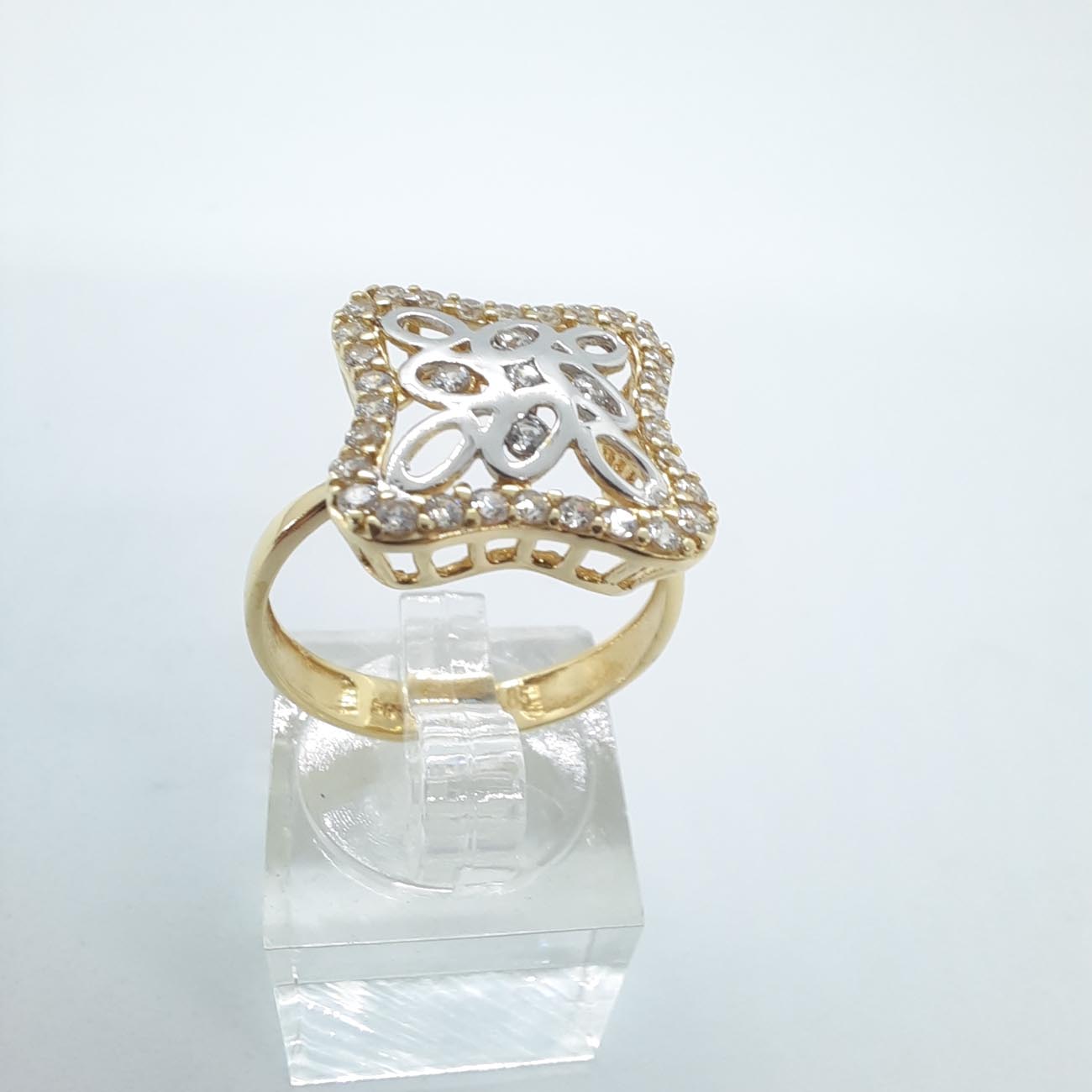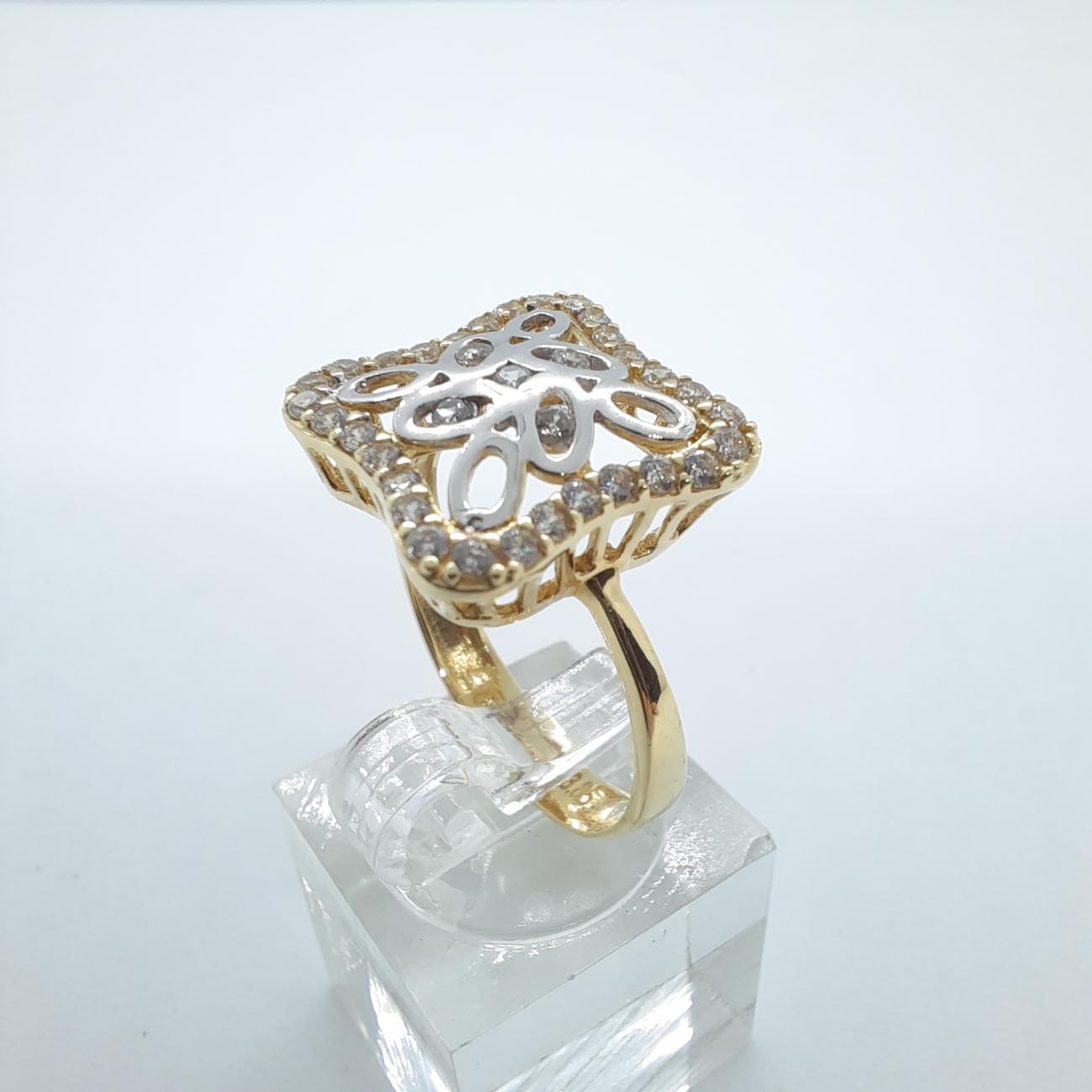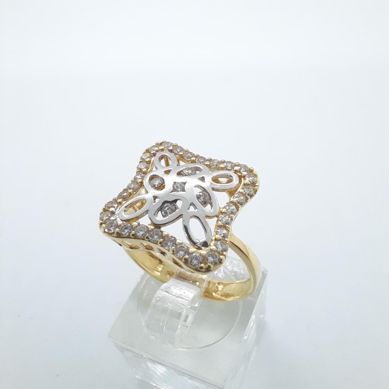 Ένα παραμυθένιο δαχτυλίδι! Με πρωτότυπη τετράγωνη εμφάνιση , πολύ λεπτομερές σκάλισμα, μοντέρνο design , χρυσό 14 καρατίων και λευκά ζιργκόν, ιδανικό για την γυναίκα που επιθυμεί να ξεχωρίζει.