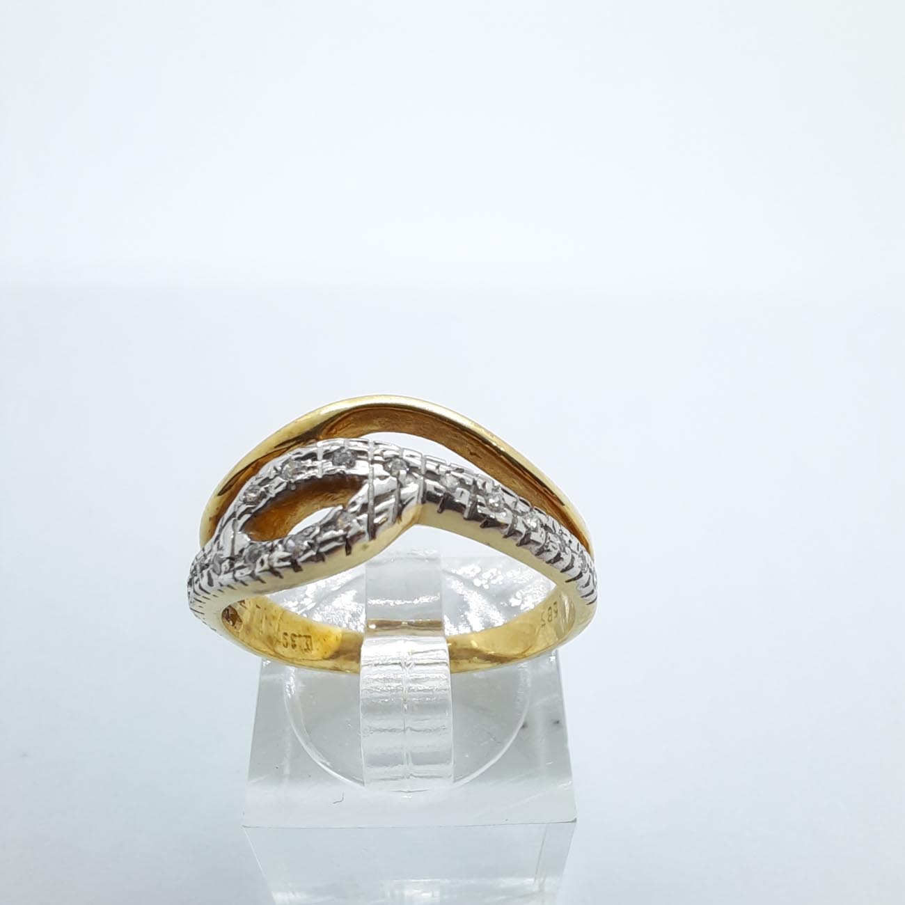 Μίνιμαλ αλλά πολυτελές, συνδυασμός γεωμετρικού design με εκτυφλωτικά λευκά ζιργκόν, ένα απίστευτο δαχτυλίδι που θυμίζει φυλλαράκι από δέντρο, από χρυσό 14 καρατίων , το απόλυτο δώρο αγάπης για μια πολύ σημαντική γυναίκα.