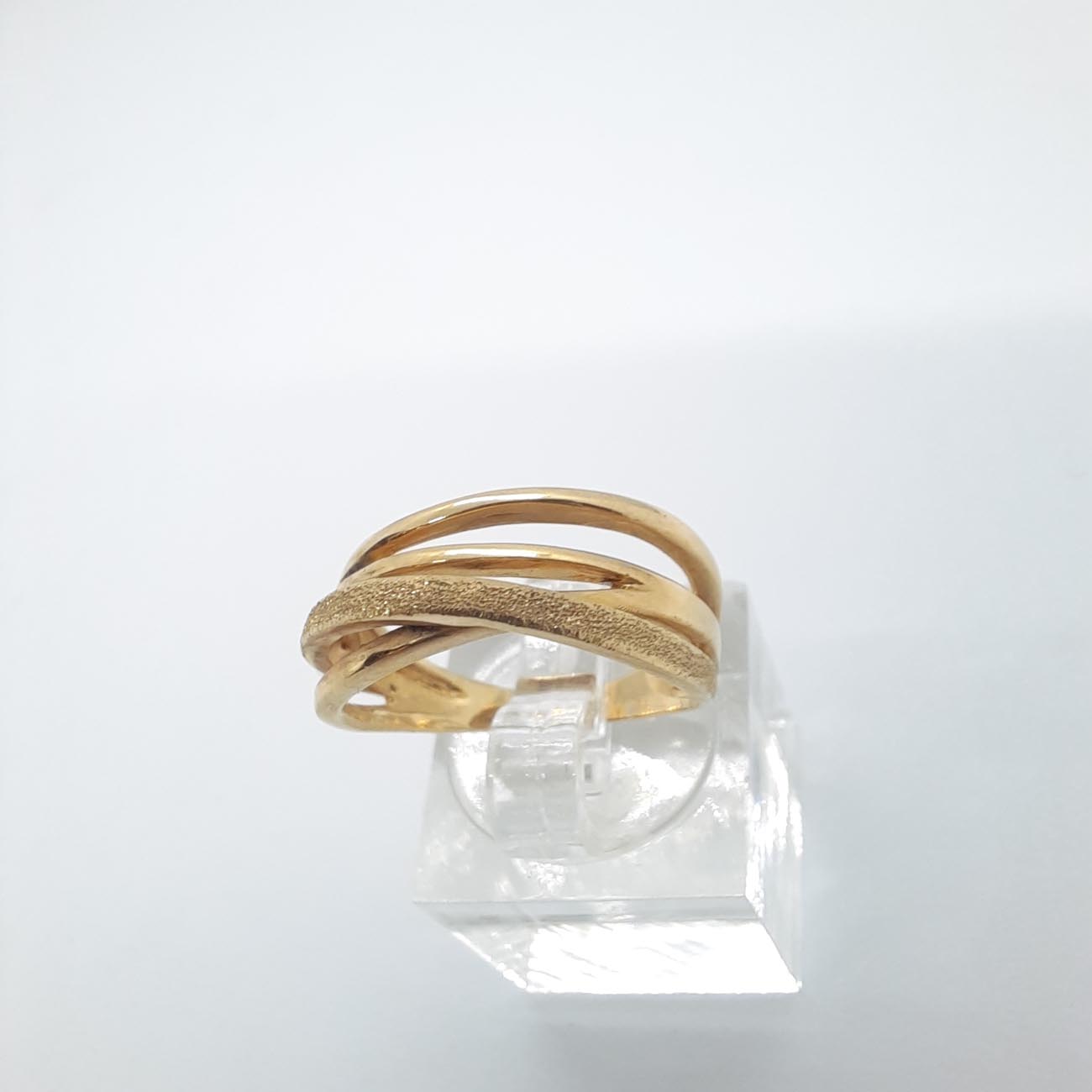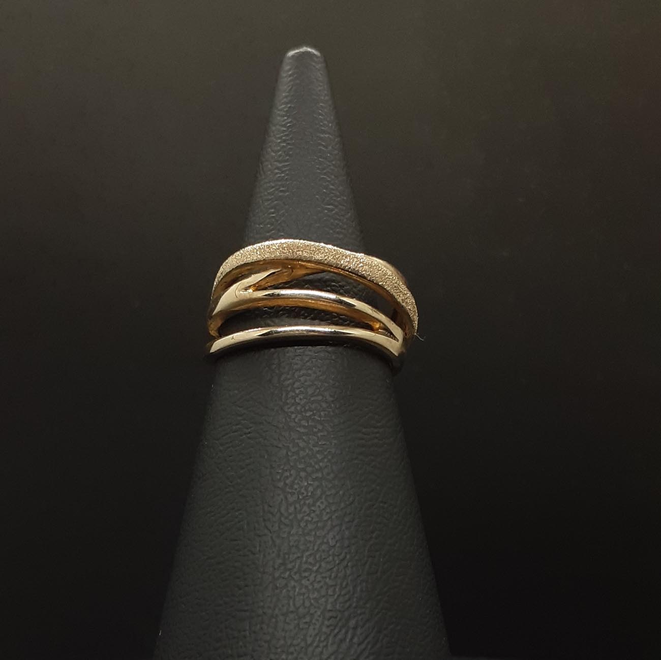 Η τελειότητα στα χέρια σας! Δαχτυλίδι από χρυσό 14 καρατίων, πολύ μοντέρνο design μίνιμαλ αισθητικής με λαμπερές λουστρέ βέργες, η μια βέργα επεξεργασμένη ζαγρέ, υπέροχη δημιουργία , διαχρονική ομορφιά.