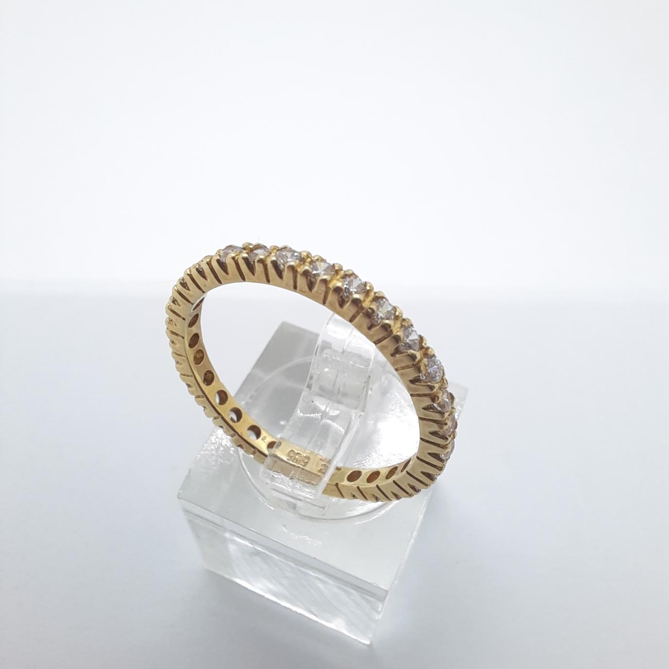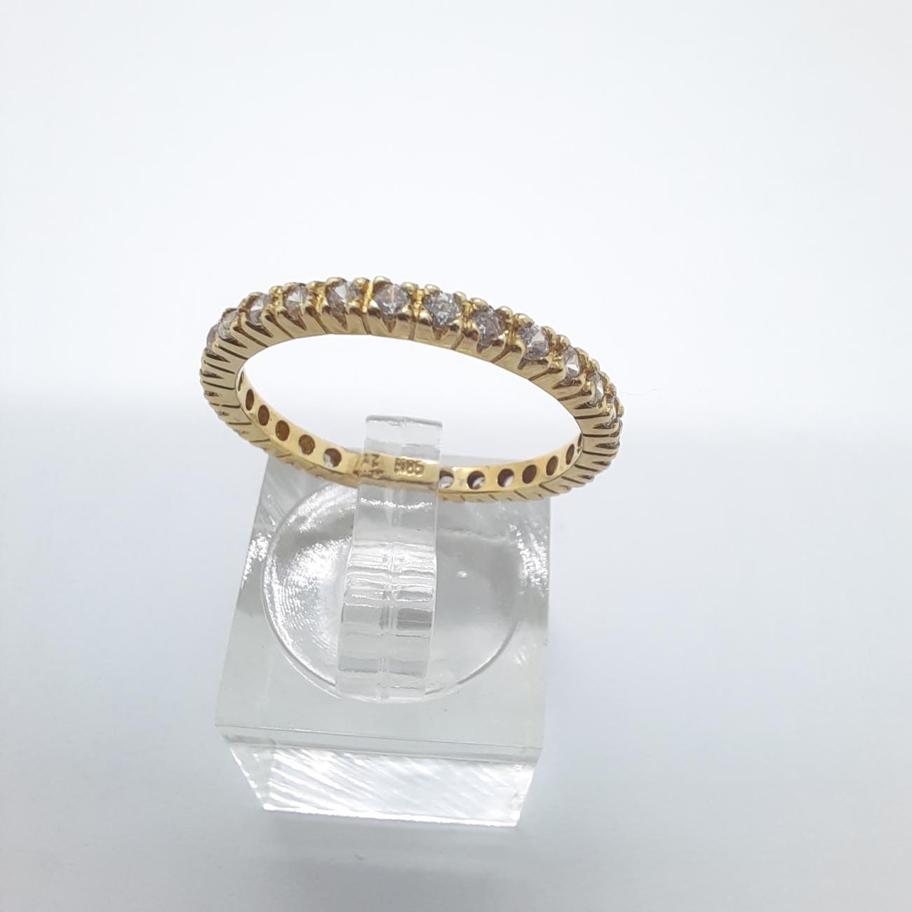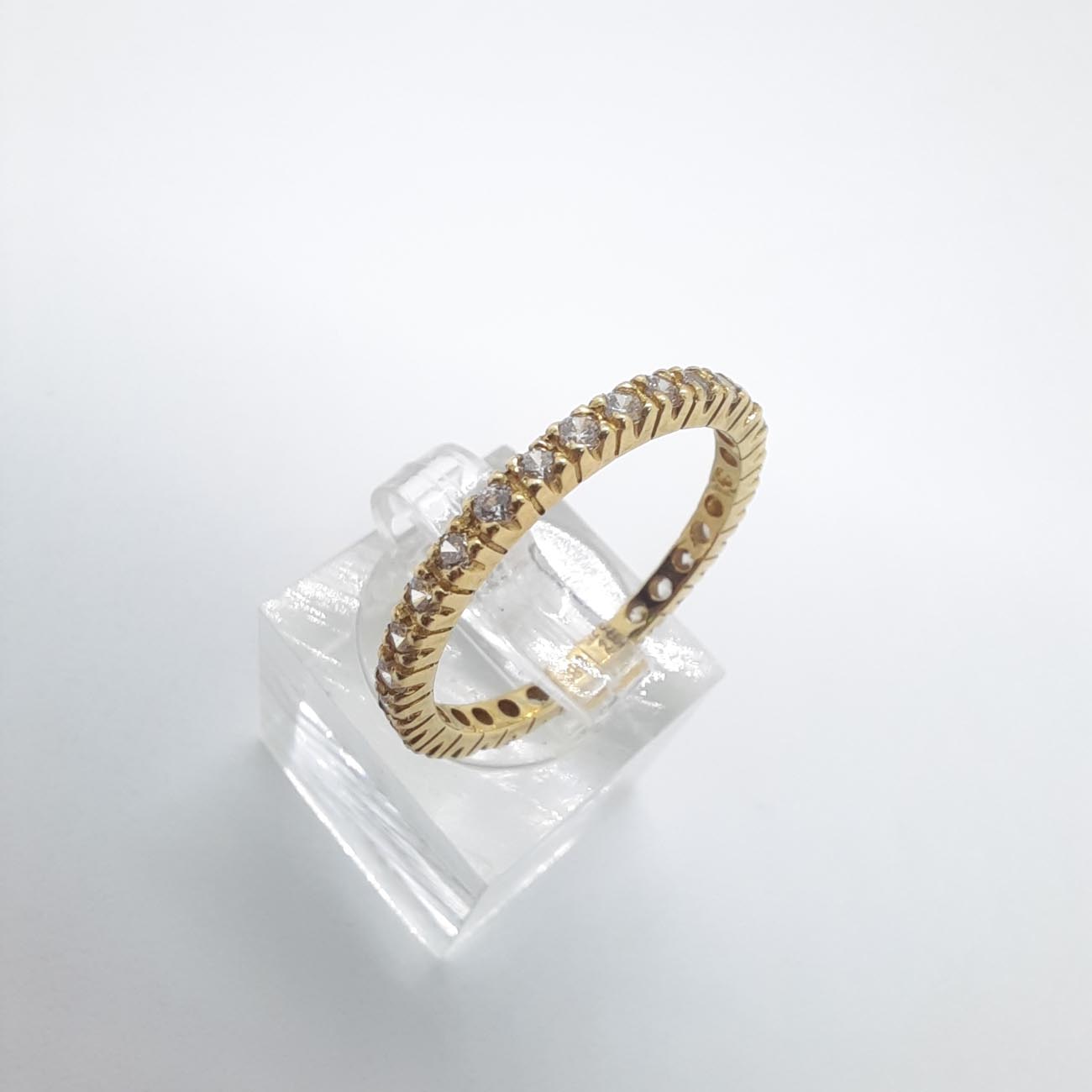 Κομψό διακριτικό χρυσό δαχτυλίδι K14 ολόκληρο με σειρά από λευκά λαμπερά ζιργκόν. FASHION TIP : φοριέται μεμονωμένα ή σε συνδυασμό με την βέρα σας, το μονόπετρό σας καθώς και με όλα τα δαχτυλίδια σας!