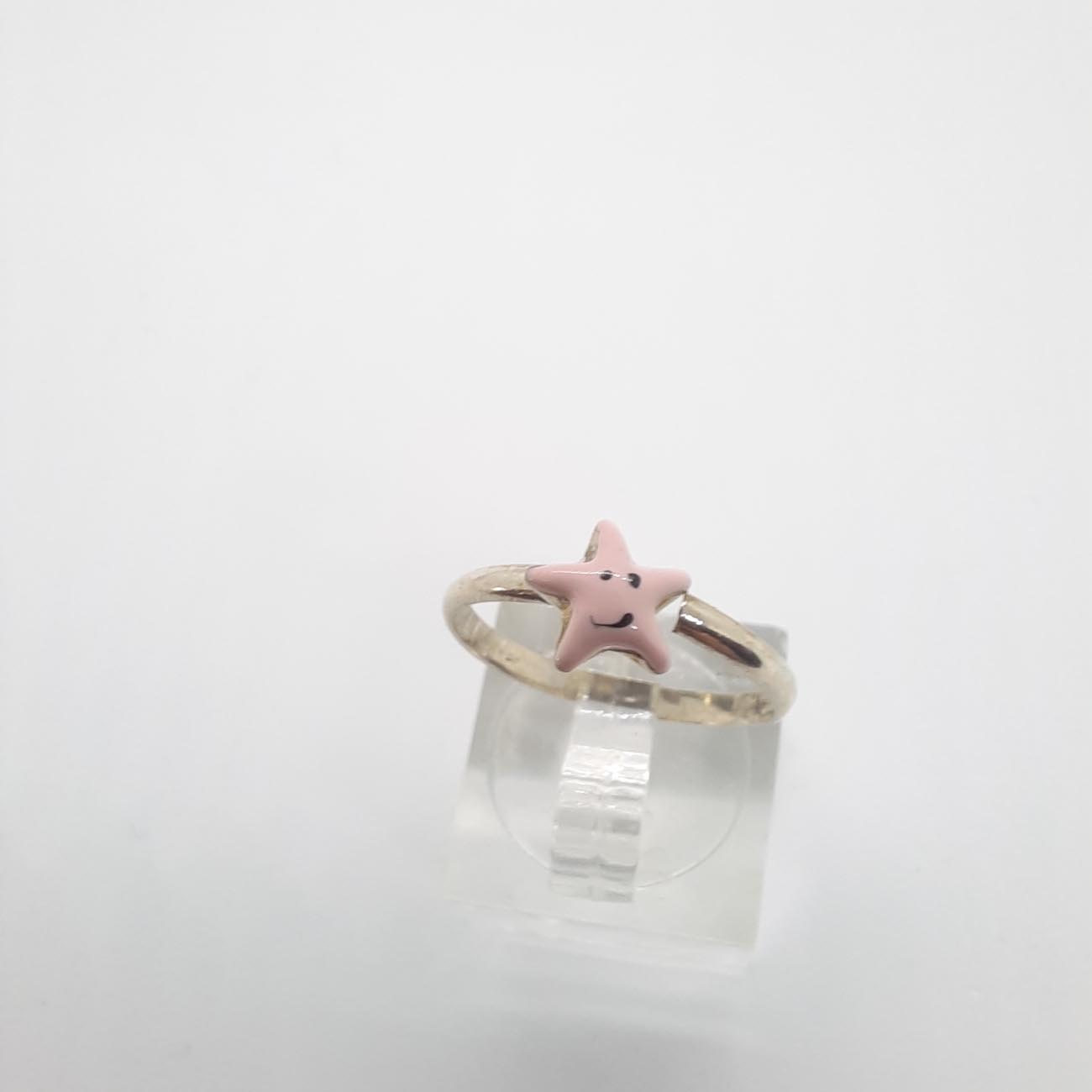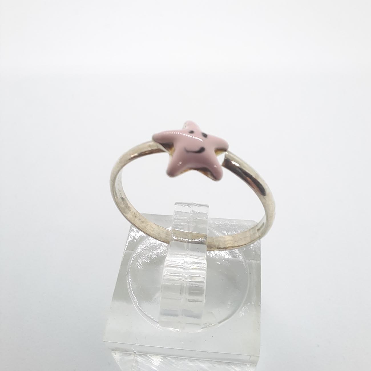Ασημένιο δαχτυλίδι 9.25 με ένα χαμογελαστό αστεράκι με σμάλτο σε ροζ απόχρωση, ιδανικό στολίδι για μικρές δεσποινίδες.