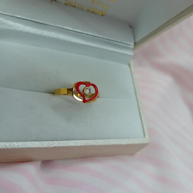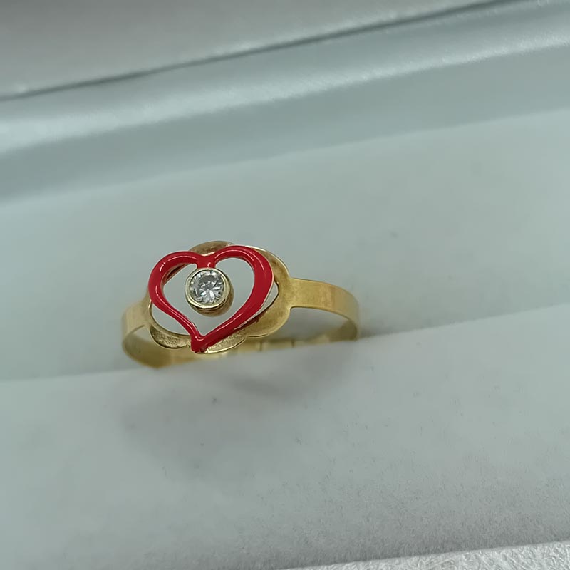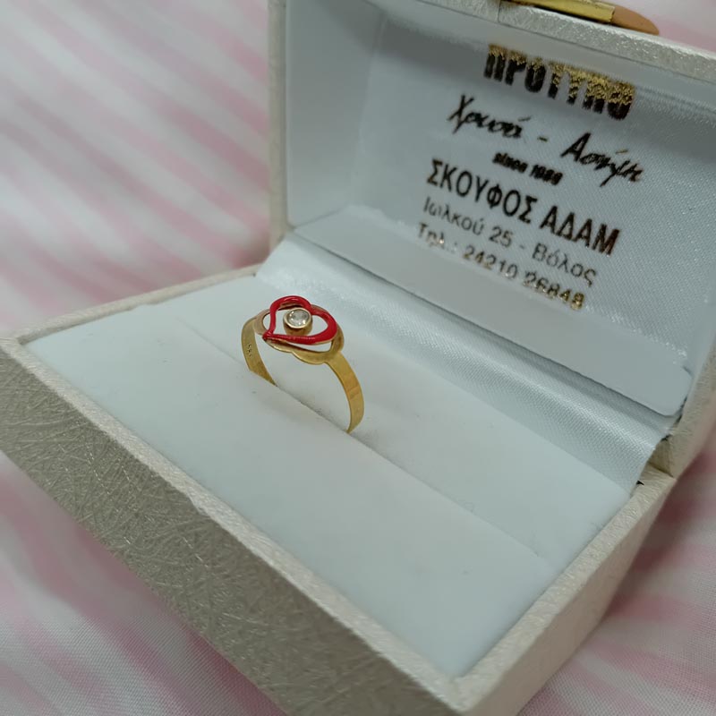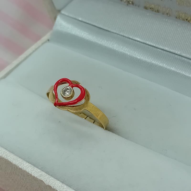 Μοντέρνο δαχτυλίδι για κοριτσάκι από χρυσό 14 ΚΑΡΑΤΙΩΝ με ένα πελώριο λευκό ζιργκόν στο κέντρο μιας καρδιάς από κόκκινο σμάλτο και ειδική κατασκευή για αυξομείωση μεγέθους.