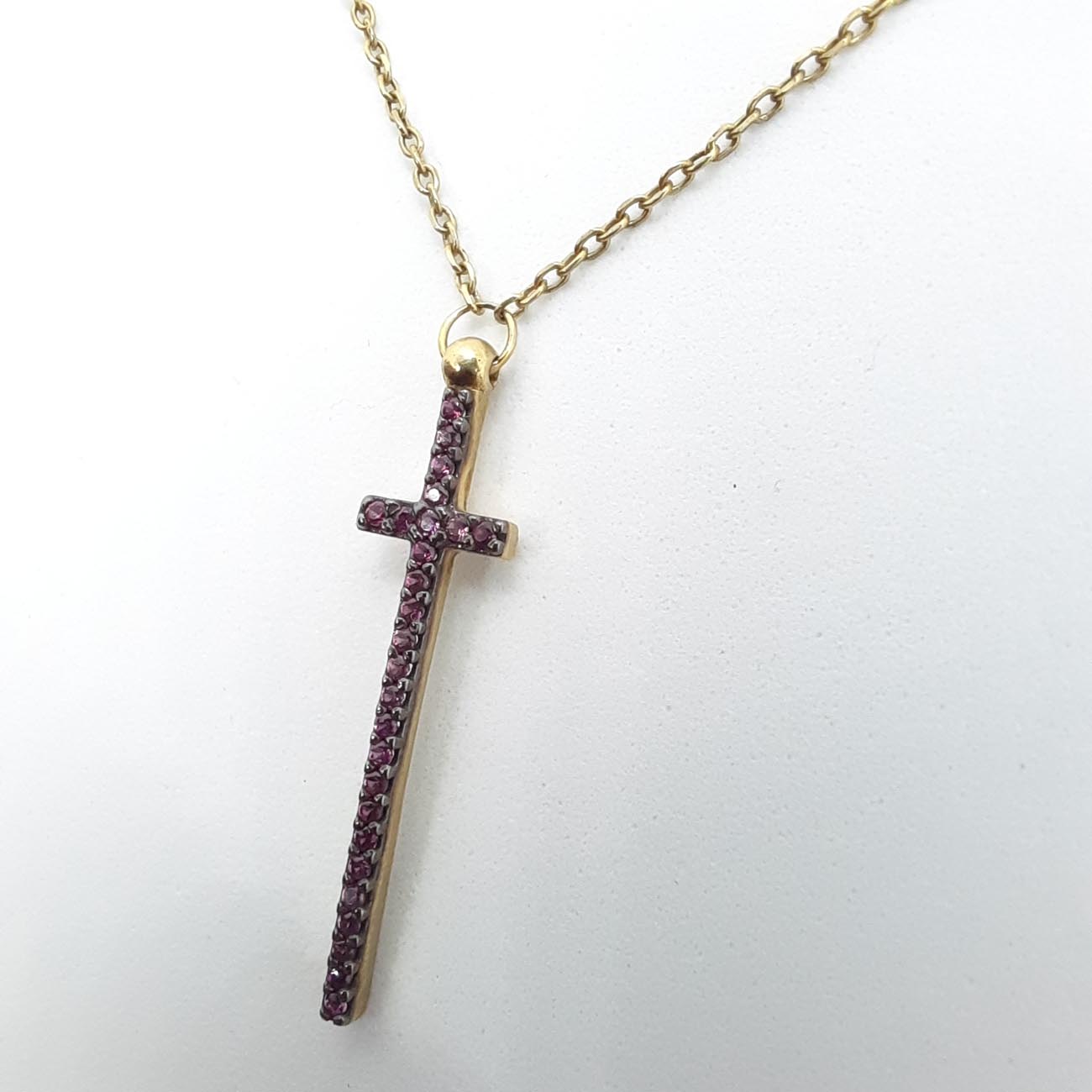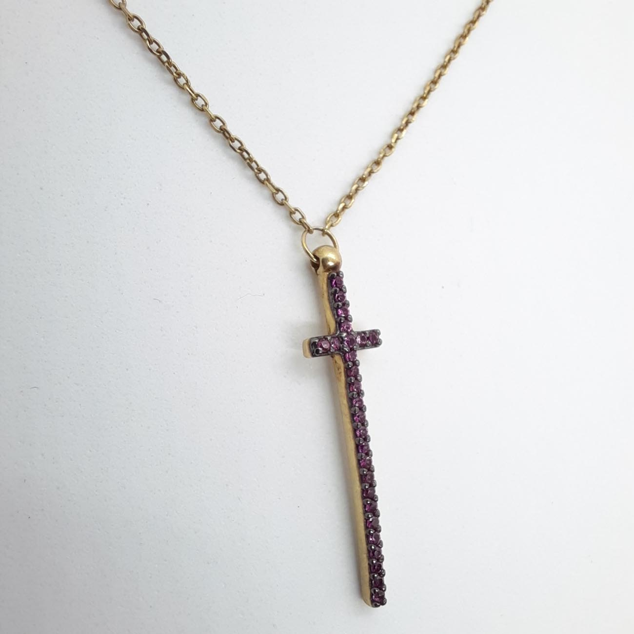 Επιχρυσωμένος σταυρός μωβ ζιργκόν με αλυσίδα