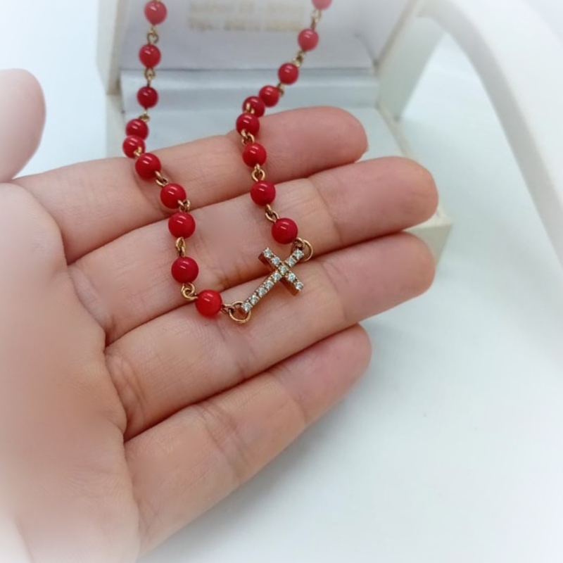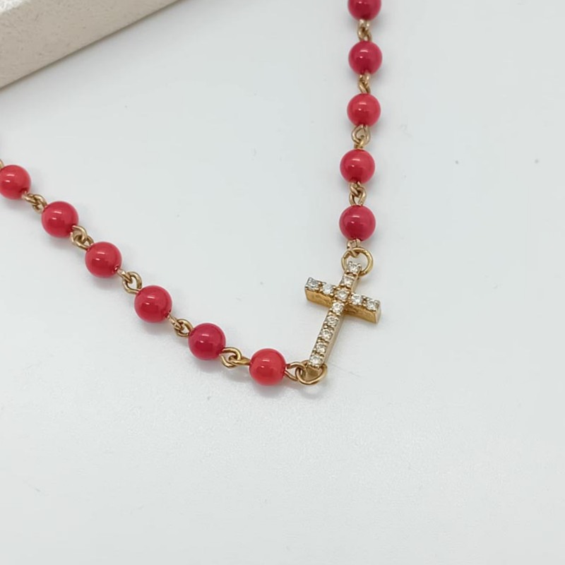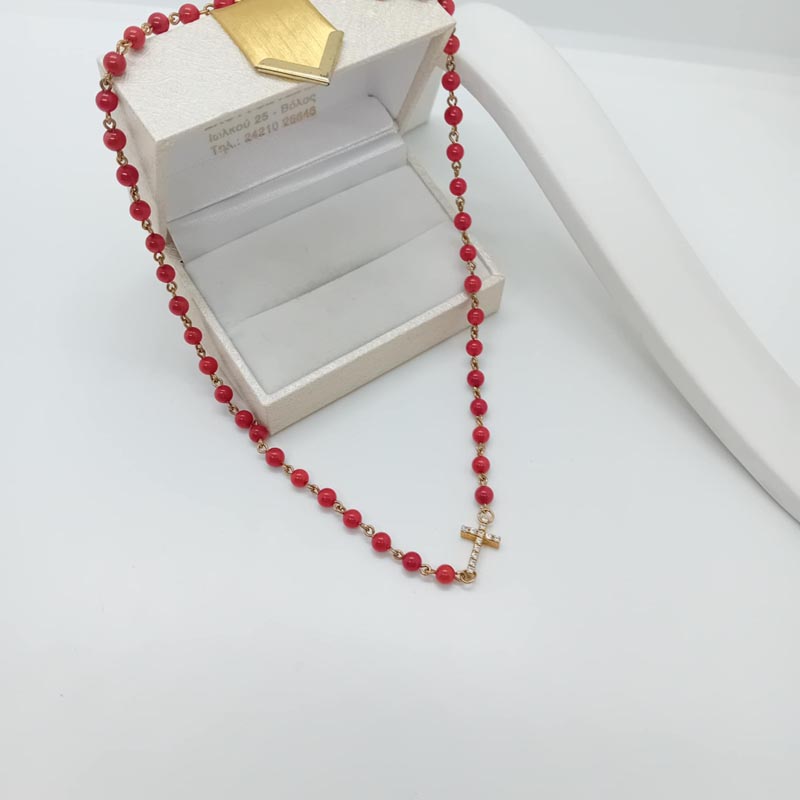 Ένα πραγματικά υπέροχο καλοκαιρινό κόσμημα, κολιέ από κοράλλι με σταυρό στολισμένο με λευκά ζιργκόν, από επιχρυσωμένο ασήμι, για πολύ ξεχωριστές εμφανίσεις !