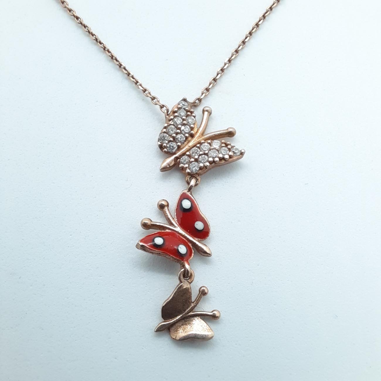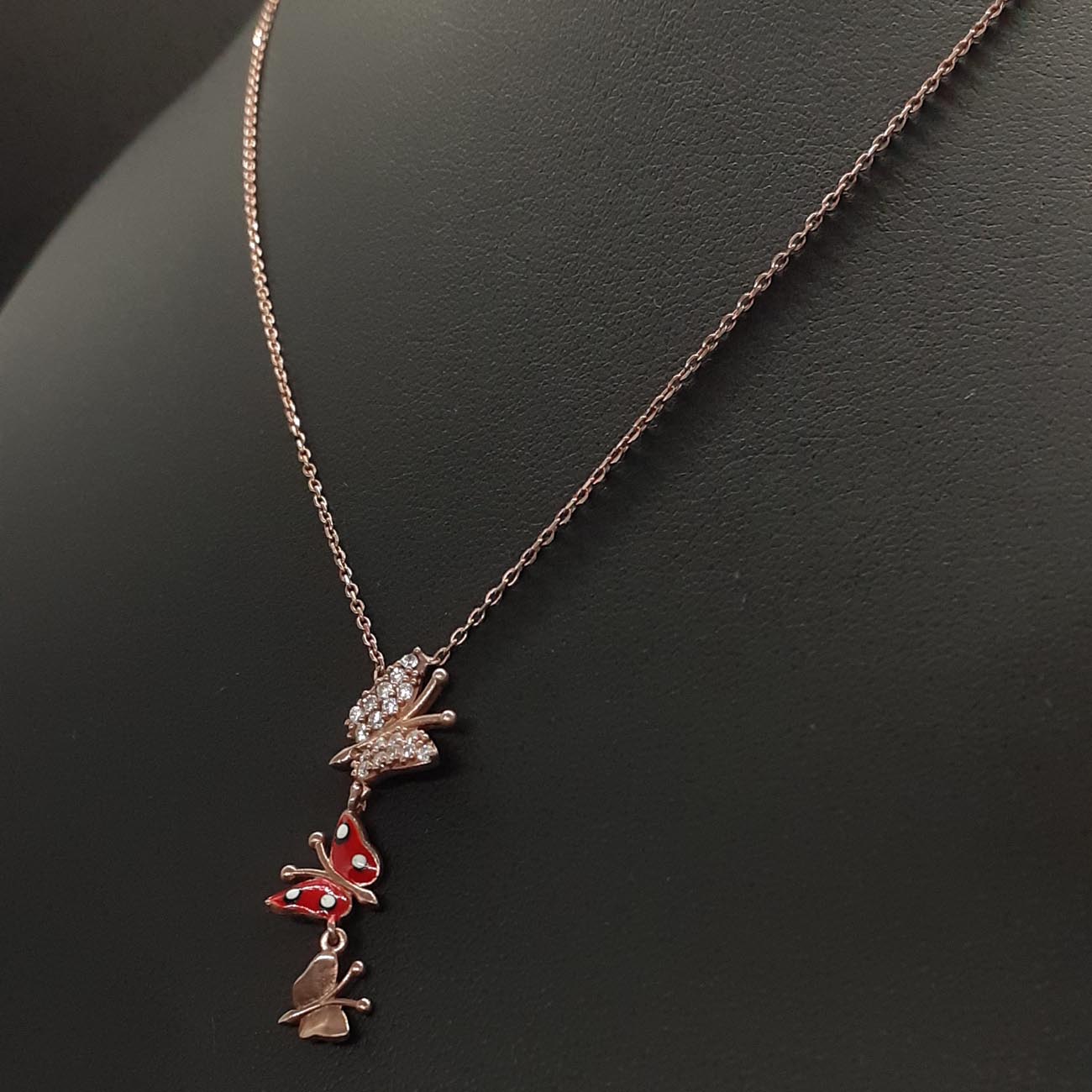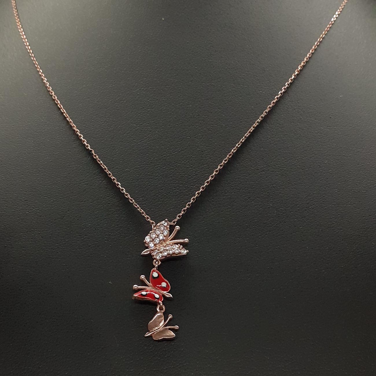 Πρωτότυπο και ρομαντικό ασημένιο επιχρυσωμένο κολιέ σε rosegold αποχρώσεις με φιγούρες πεταλούδες, ένα πολύ θηλυκό κόσμημα!
