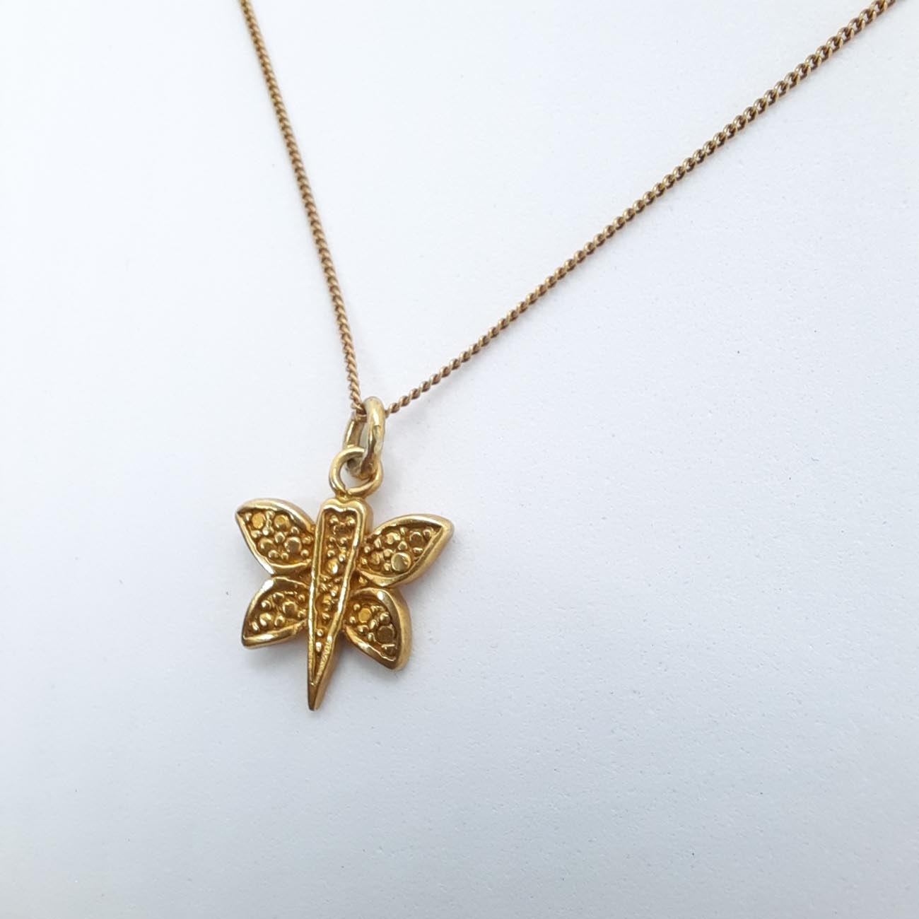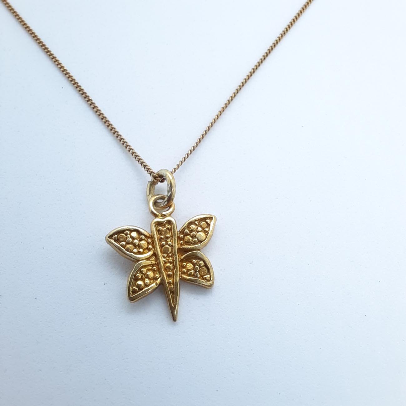Ρομαντική πανέμορφη τυχερή λιβελούλα με υπέροχο σκάλισμα από επιχρυσωμένο ασήμι με την αλυσίδα του.