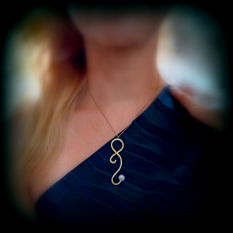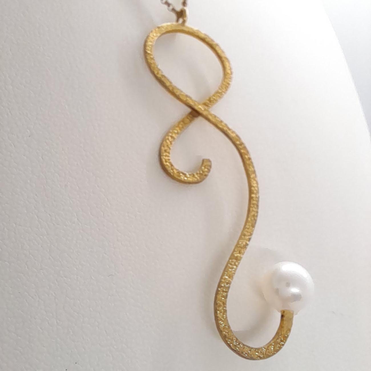 Θαυμάσιο παντατίφ με αλυσίδα, από ασήμι επιχρυσωμένο, σφυρήλατη επεξεργασία στην μπροστινή όψη, με πολύ όμορφο design και λευκή πέρλα στην άκρη του, μια καλλιτεχνική δημιουργία εμπνευσμένη από την τέχνη της αρχαίας Ελλάδας για μια γυναίκα με ξεχωριστό στυλ.