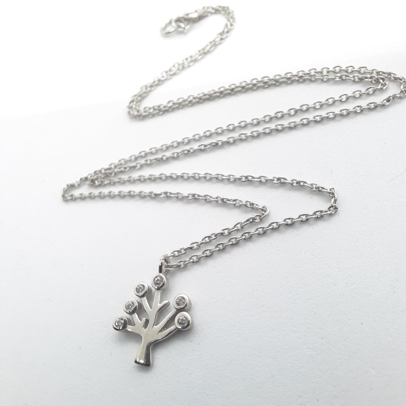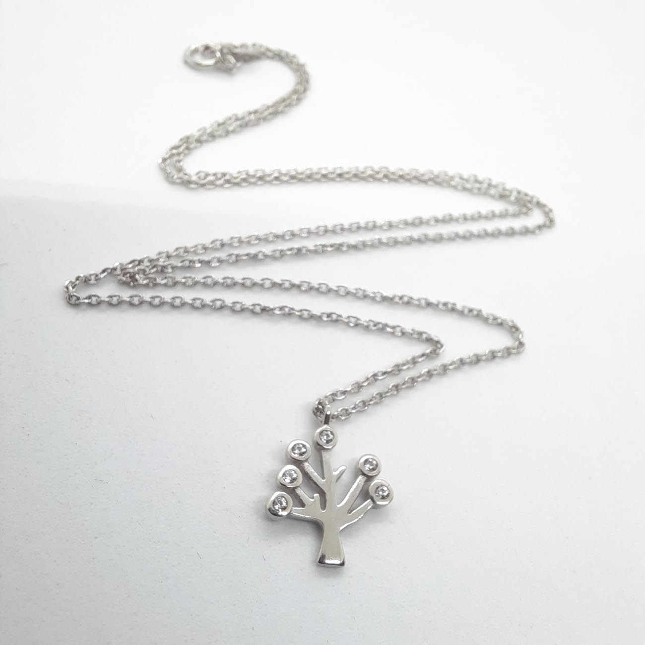 Υπέροχο κολιέ δέντρο της ζωής από ασήμι, διακοσμημένο με λευκά ζιργκόν, ένα διαχρονικό κόσμημα για κάθε κομψή γυναίκα.