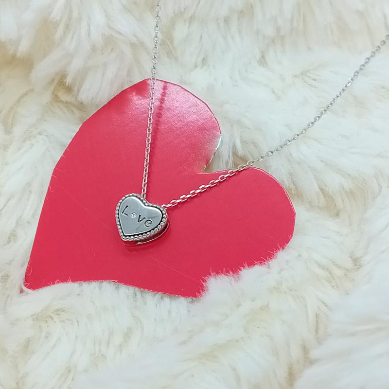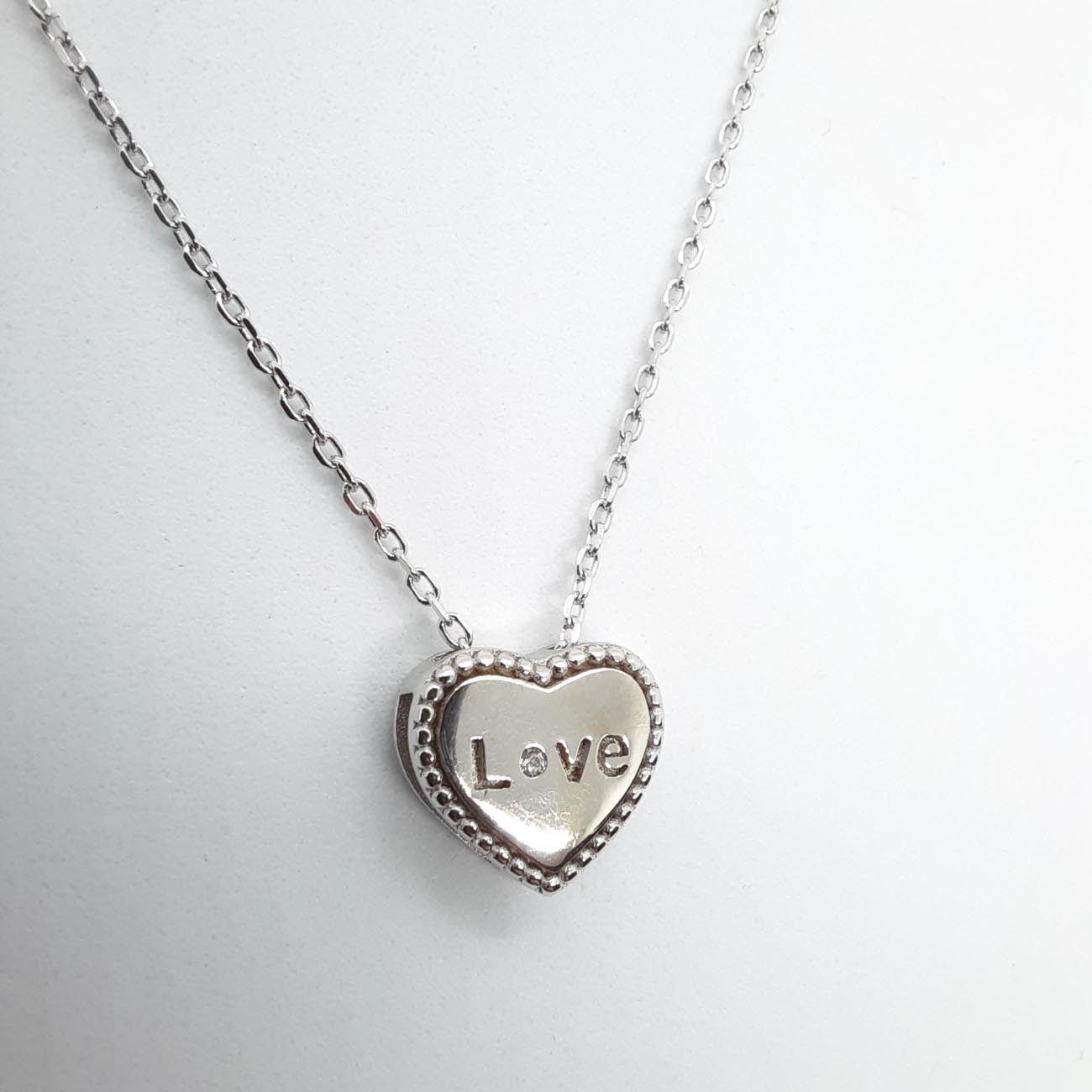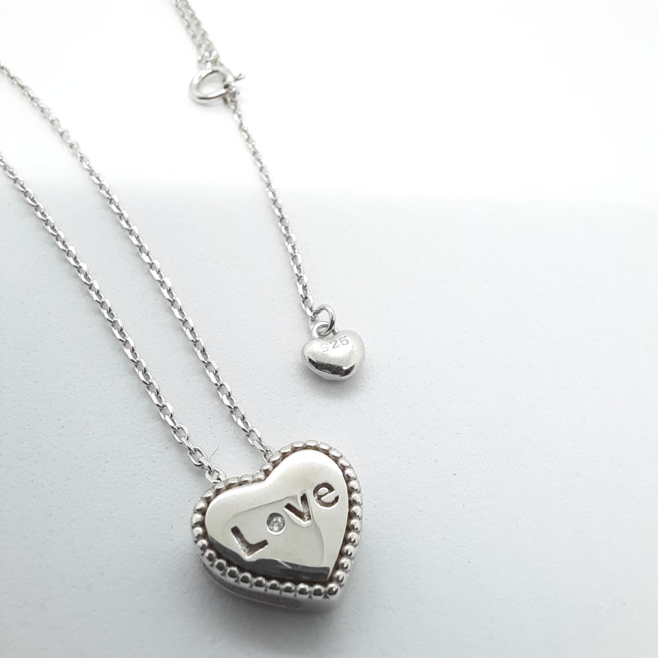 Μοντέρνο κολιέ με αλυσίδα, από ασήμι ,με υπέροχη καρδιά, με χαραγμένη την λέξη Love και με μικρό διακριτικό ζιργκόν στην θέση του 'o'. Κομψό δώρο Βαλεντίνου, γενεθλίων , επετείου!
