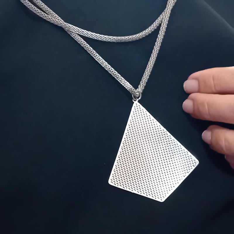 Εντυπωσιάζει με το design και το μέγεθός του αυτό το παντατίφ, από ασήμι 9.25, εμπνευσμένο από την απαράμιλλη ομορφιά της αρχαίας Αιγύπτου, με αλυσίδα πολύ μακριά και χαρακτηριστικά έντονη (Η αλυσίδα είναι από άφθαρτο ατσάλι ).