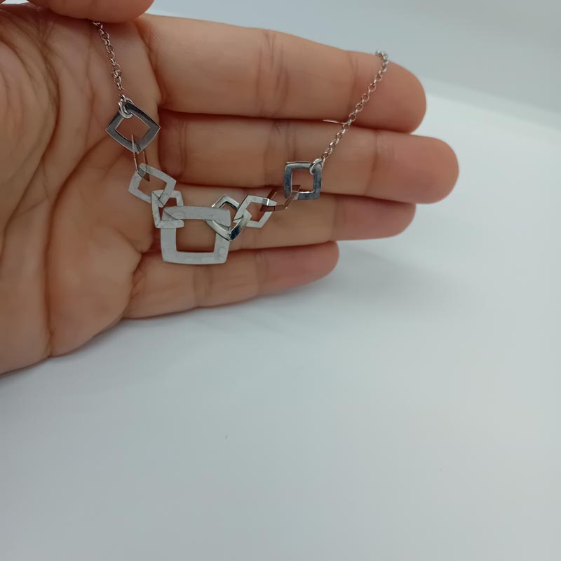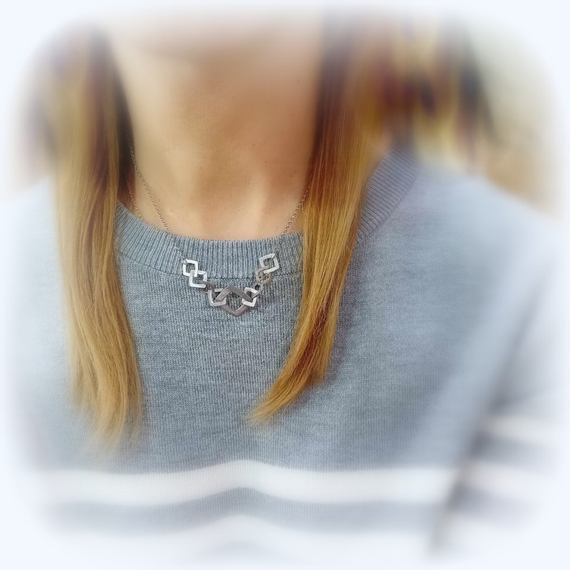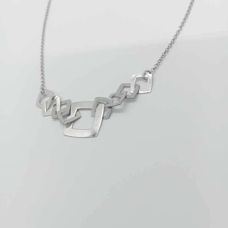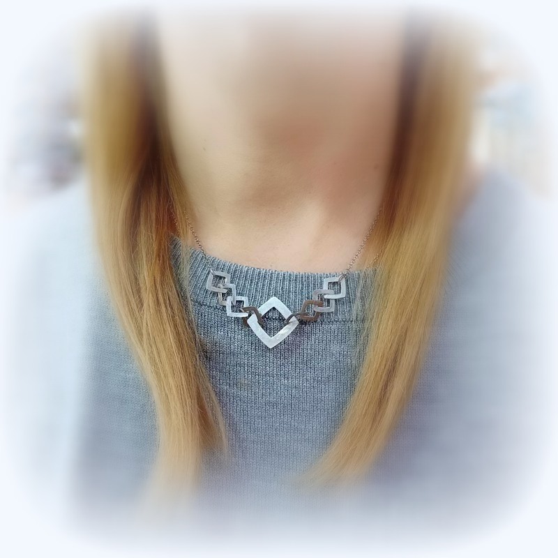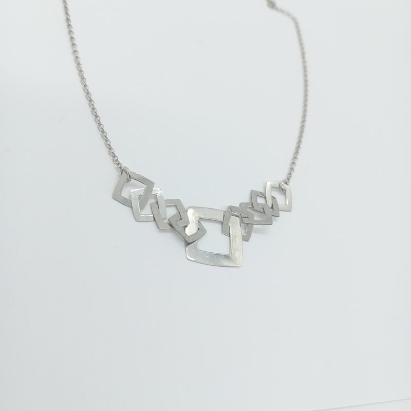 Ένα καταπληκτικό trendy κολιέ , γεωμετρικής αισθητικής, με 8 μικρούς ρόμβους και έναν μεγάλο κεντρικό ρόμβο, από ασήμι 9.25 επιπλατινωμένο, για την γυναίκα που ξέρει να ξεχωρίζει.