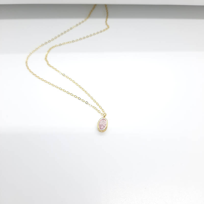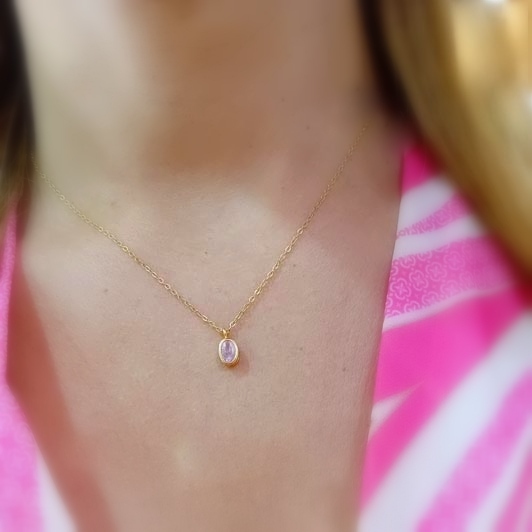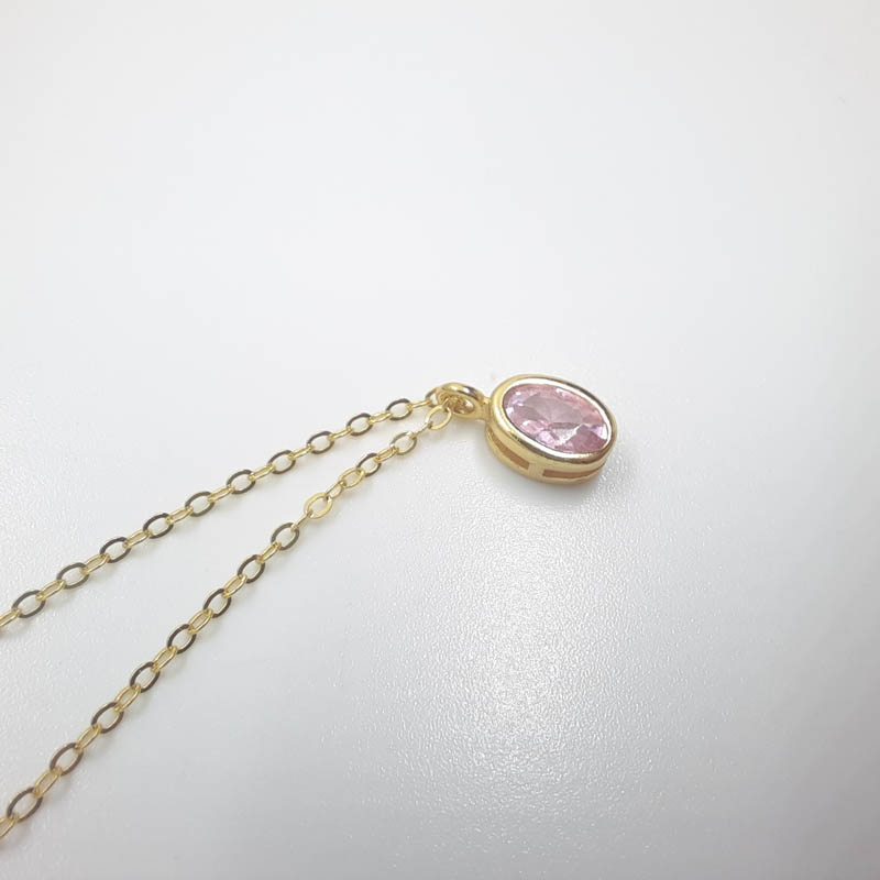 Για ρομαντικές εμφανίσεις όμορφο κολιέ από ασήμι επιχρυσωμένο με ροζ ζιργκόν σε οβάλ design περασμένο σε κομψή αλυσίδα .