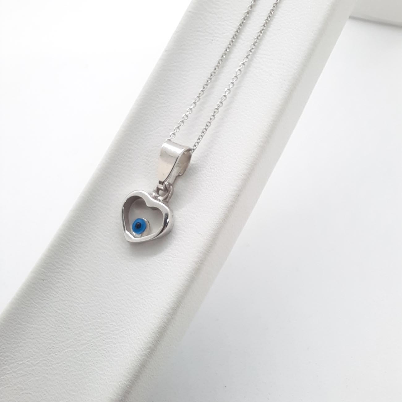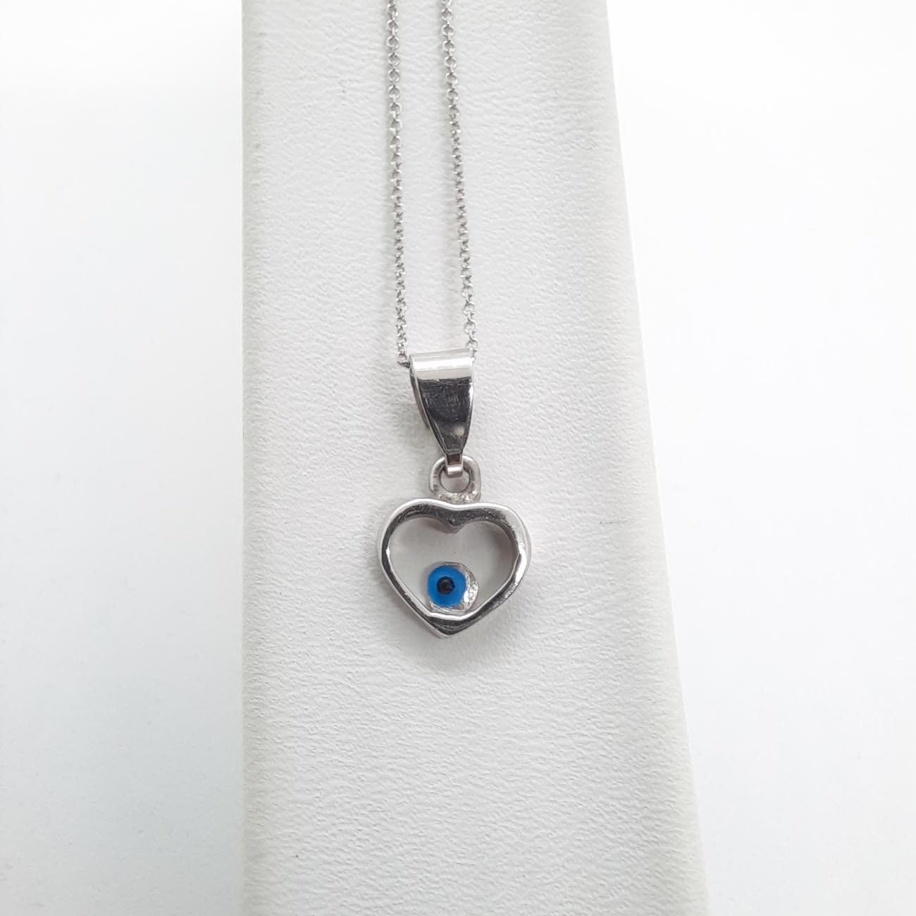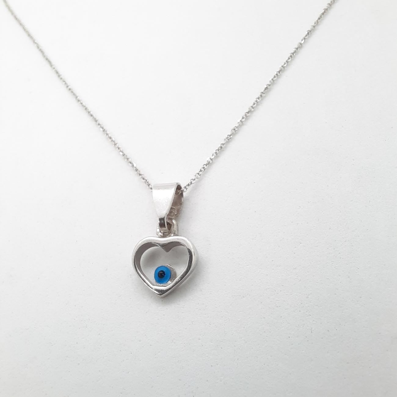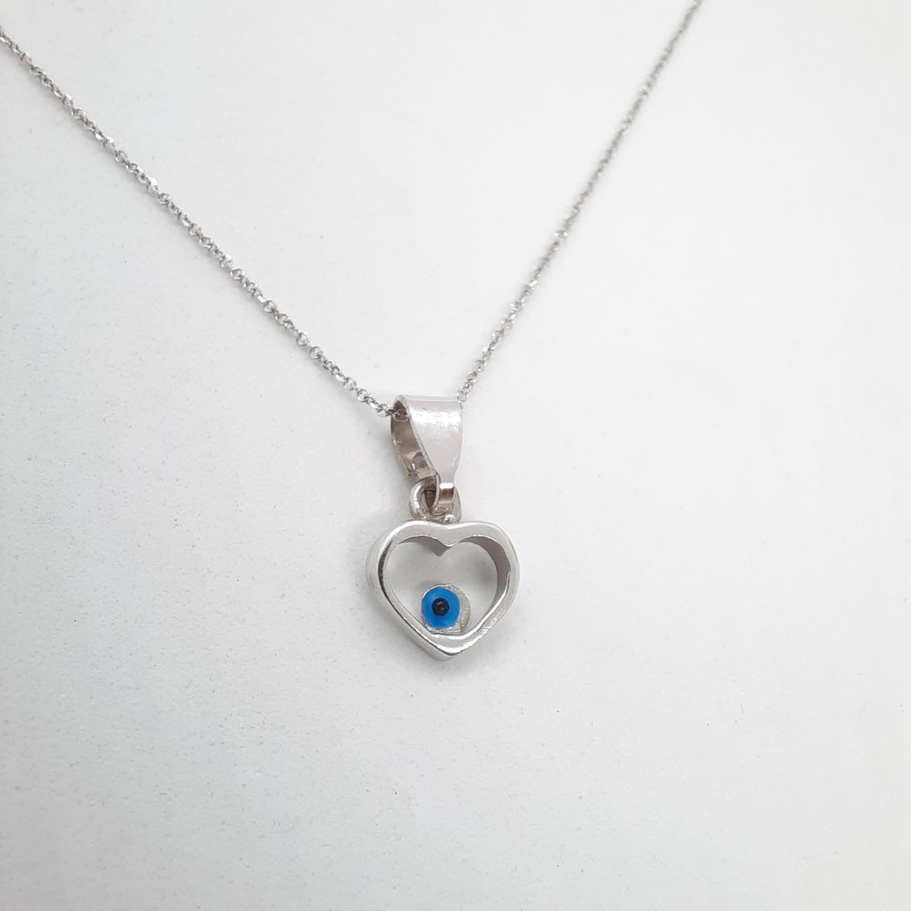Υπέρκομψο κολιέ με χαριτωμένη καρδιά με ματόχαντρο, από λευκόχρυσο 14 καρατίων, συνοδεύεται από αλυσίδα 9 καρατίων λευκόχρυση και χαρίζει λάμψη και φινέτσα σε κάθε σας εμφάνιση!