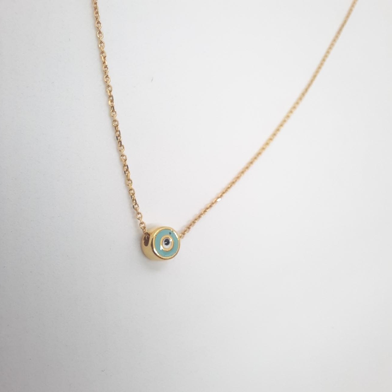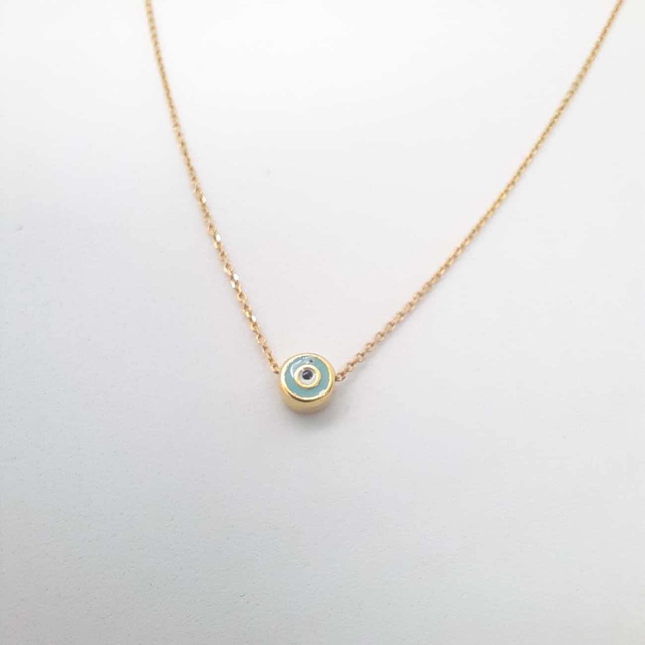 Όμορφη και διακριτικό ματόχαντρο σε κολιέ από επιχρυσωμένο ασήμι.Φοριέται μόνο του ή συνδυασμένο με πολλά άλλα κολιέ σας.