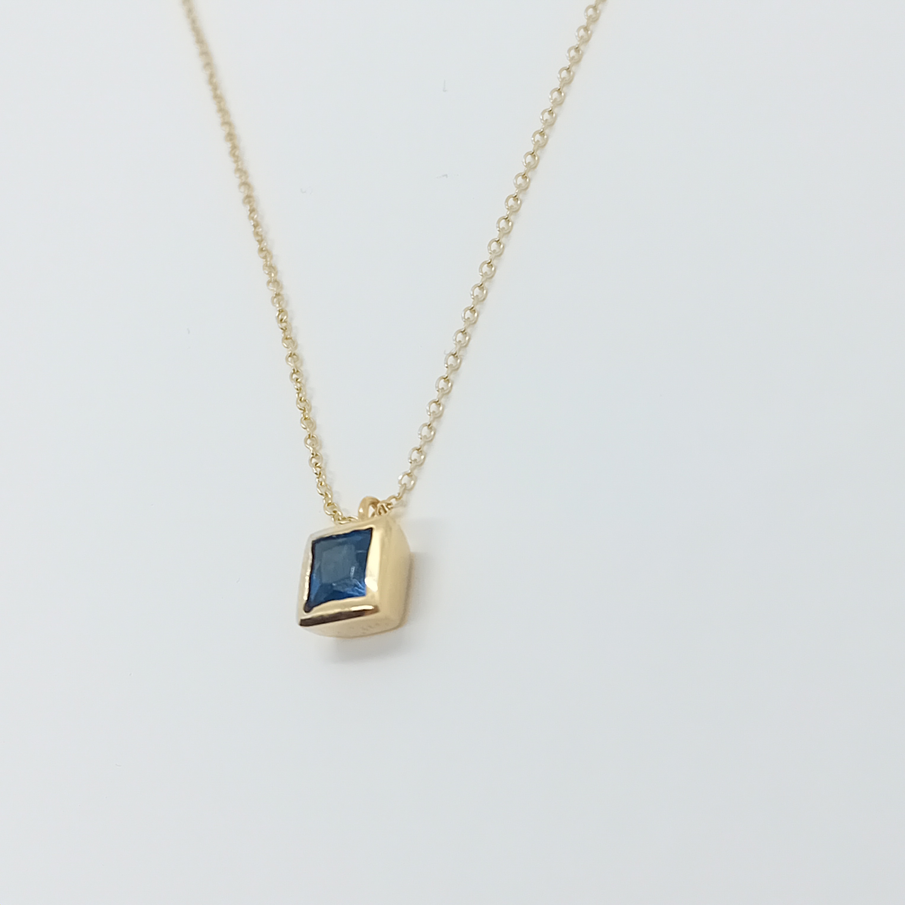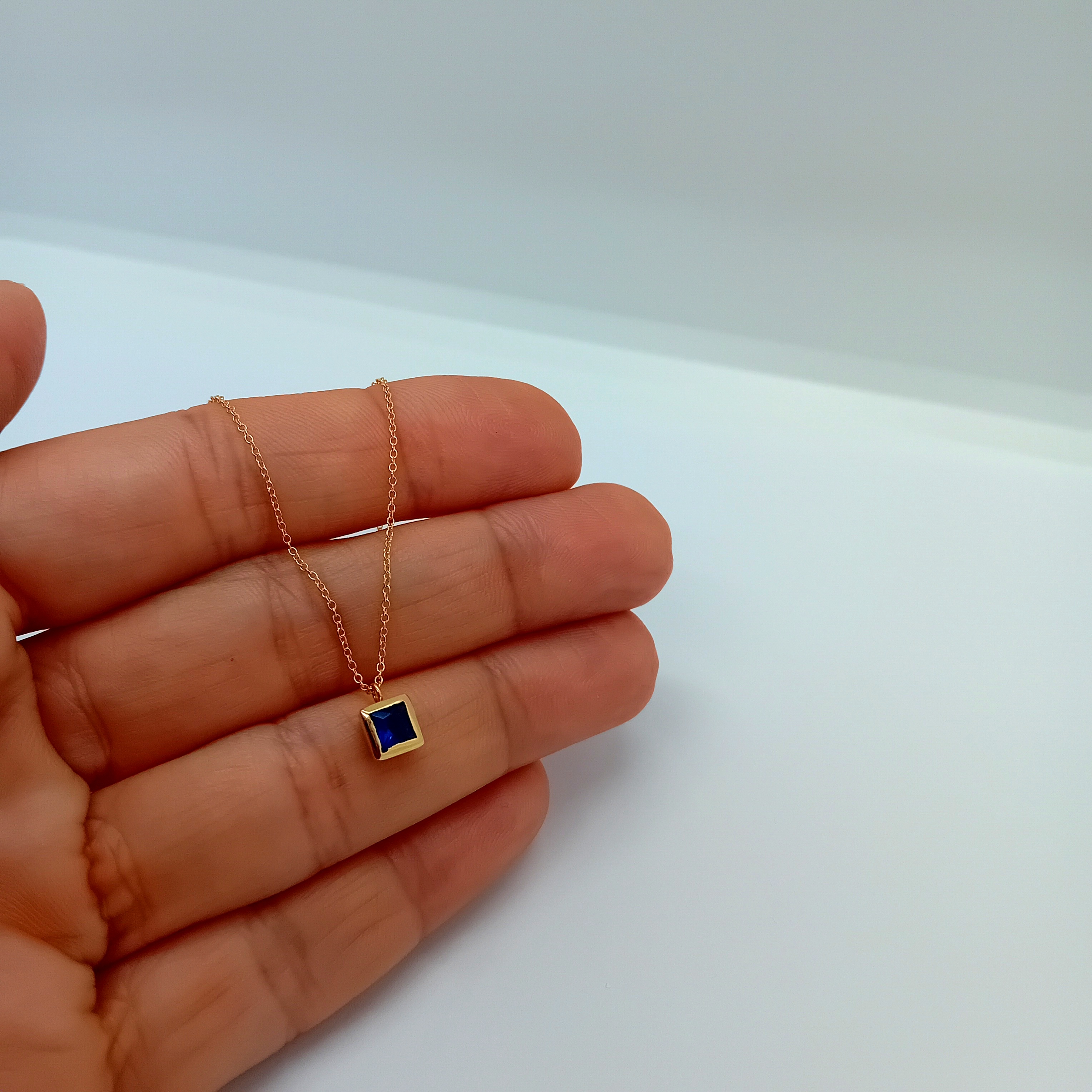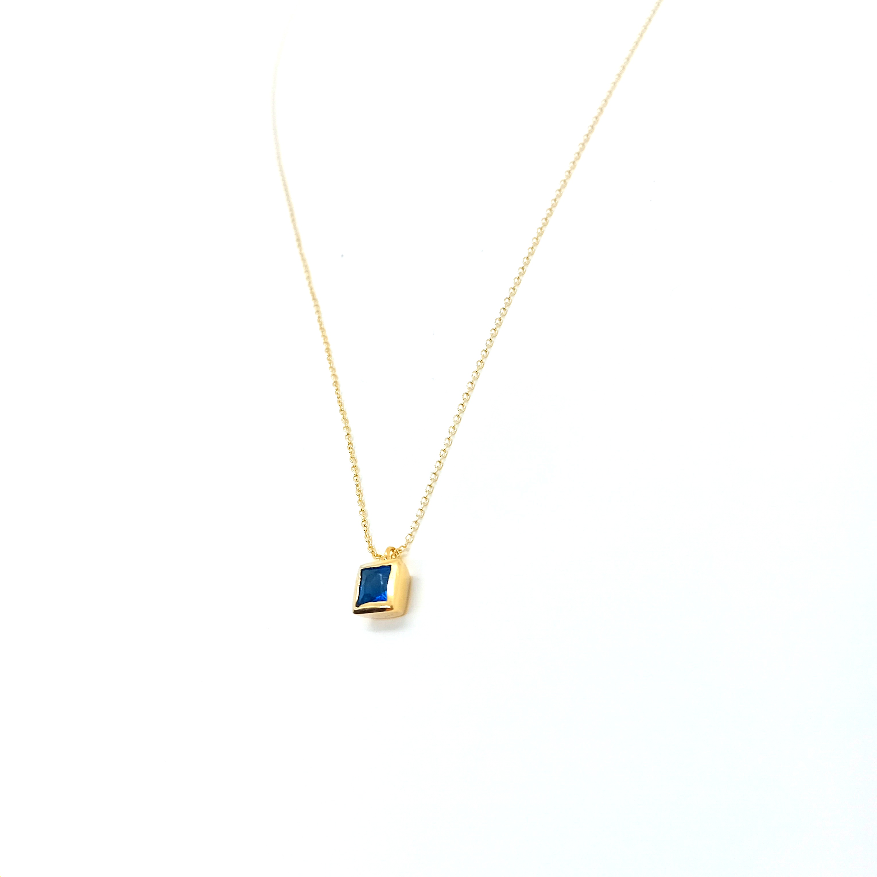 Ό,τι ακριβώς χρειάζεται μια δυναμική προσωπικότητα! Κολιέ κομψό, διακριτικό, μοντέρνο! Από χρυσό Κ9 με λεπτή φίνα αλυσίδα και ζιργκόν σε βαθιά μπλε απόχρωση μέσα σε τετράγωνο χρυσό καστόνι.