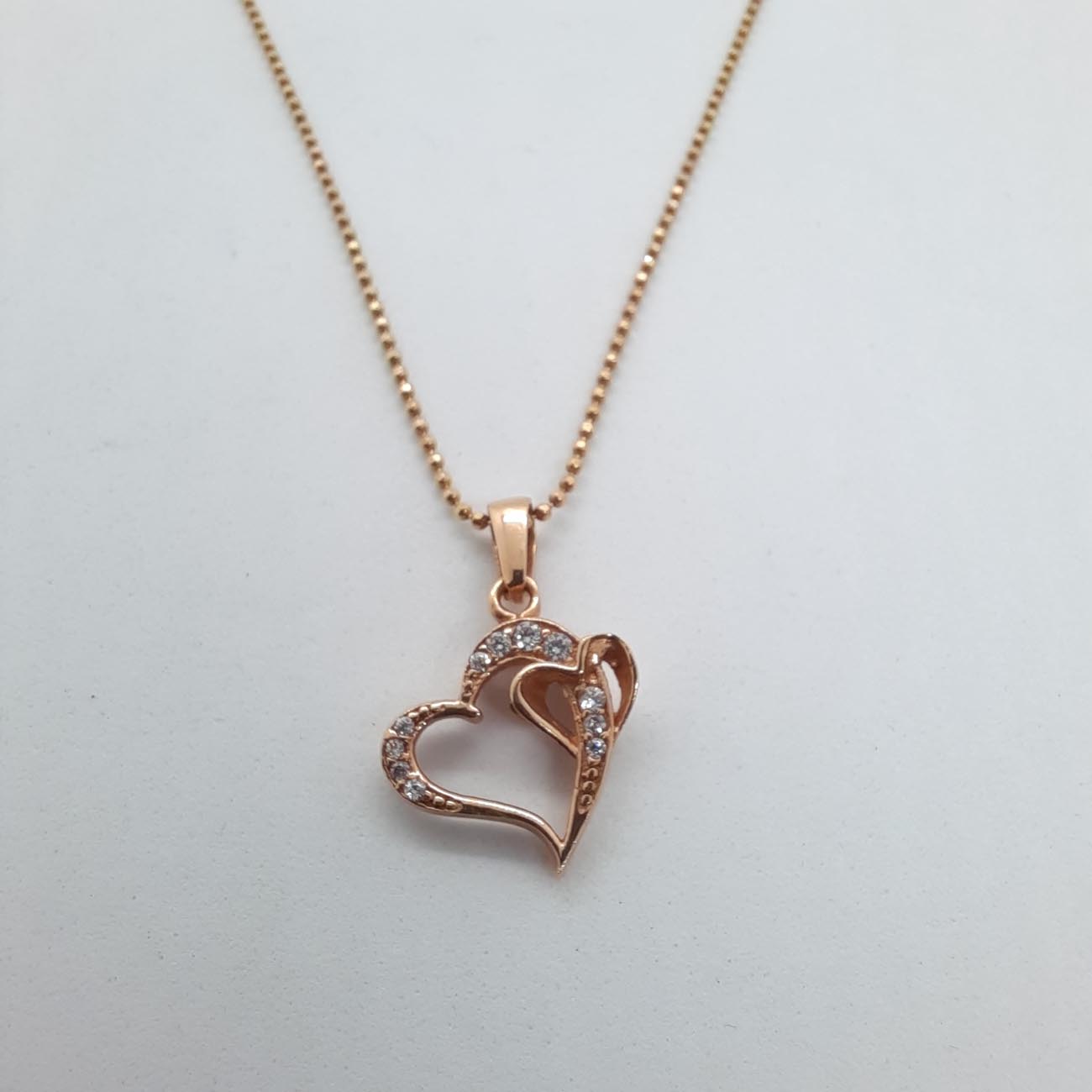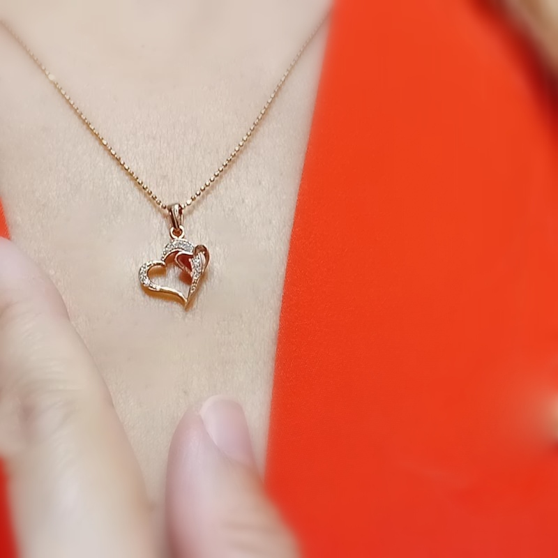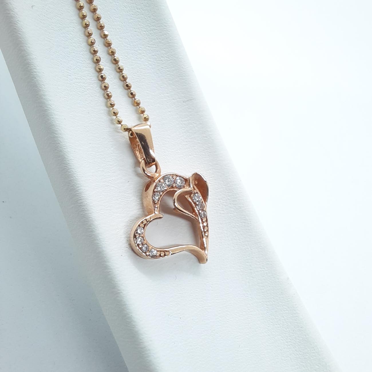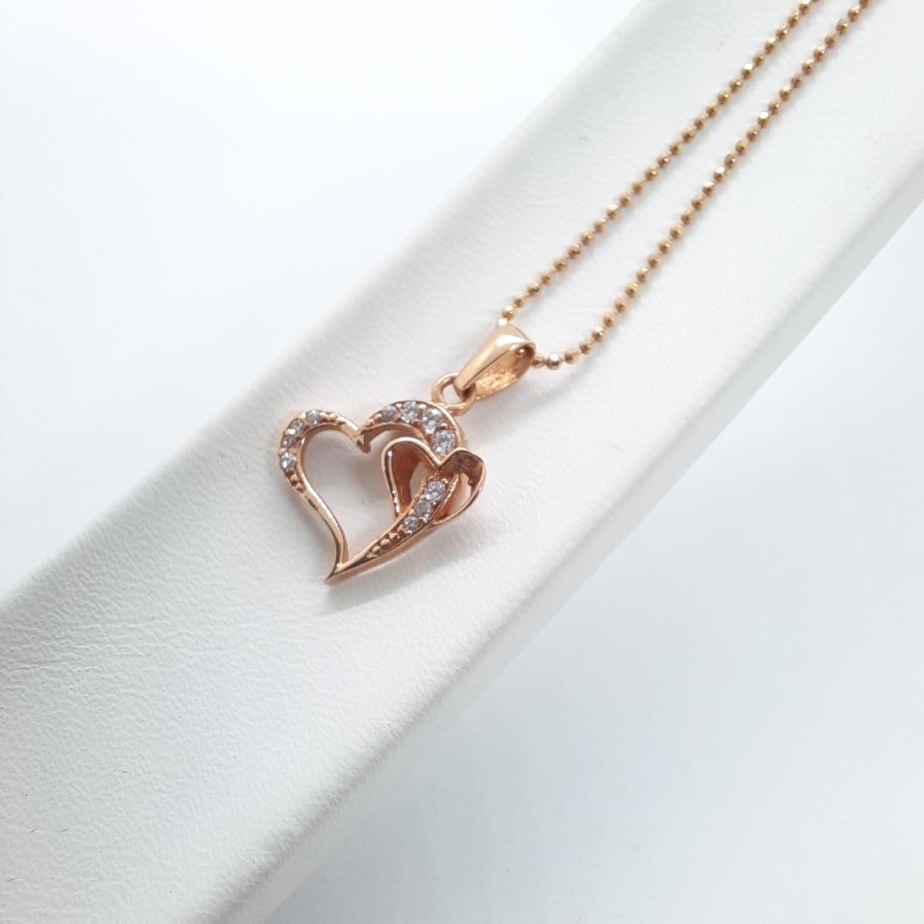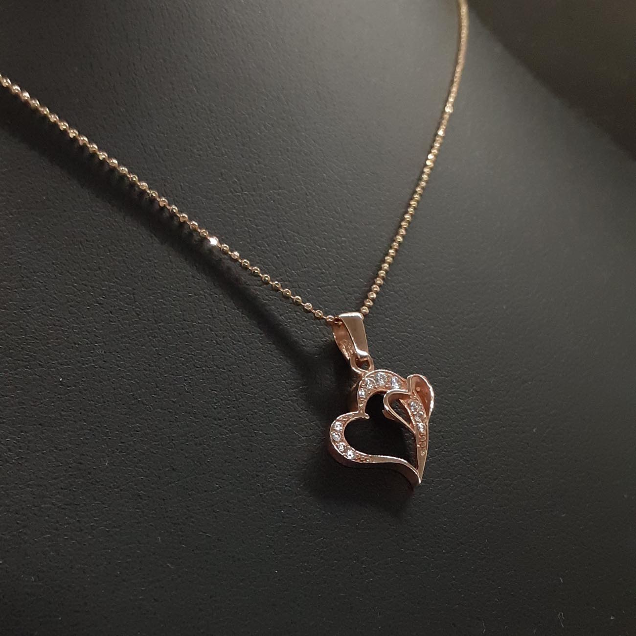 Πανέμορφο design, πολύ θηλυκό κολιέ, από ροζ χρυσό 14 καρατίων, με 2 καρδιές στολισμένες με ζιργκόν και χαρακτηριστική υπέροχη αλυσίδα, ιδανικό δώρο για την ερωτευμένη γυναίκα, σύμβολο ένωσης αγάπης και σύμβολο ένωσης της μανούλας με το μωρό .