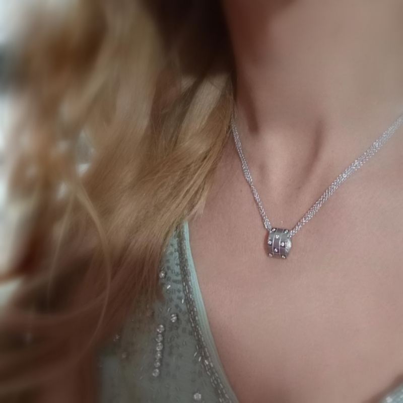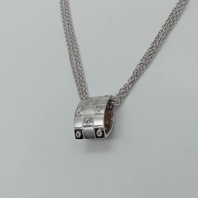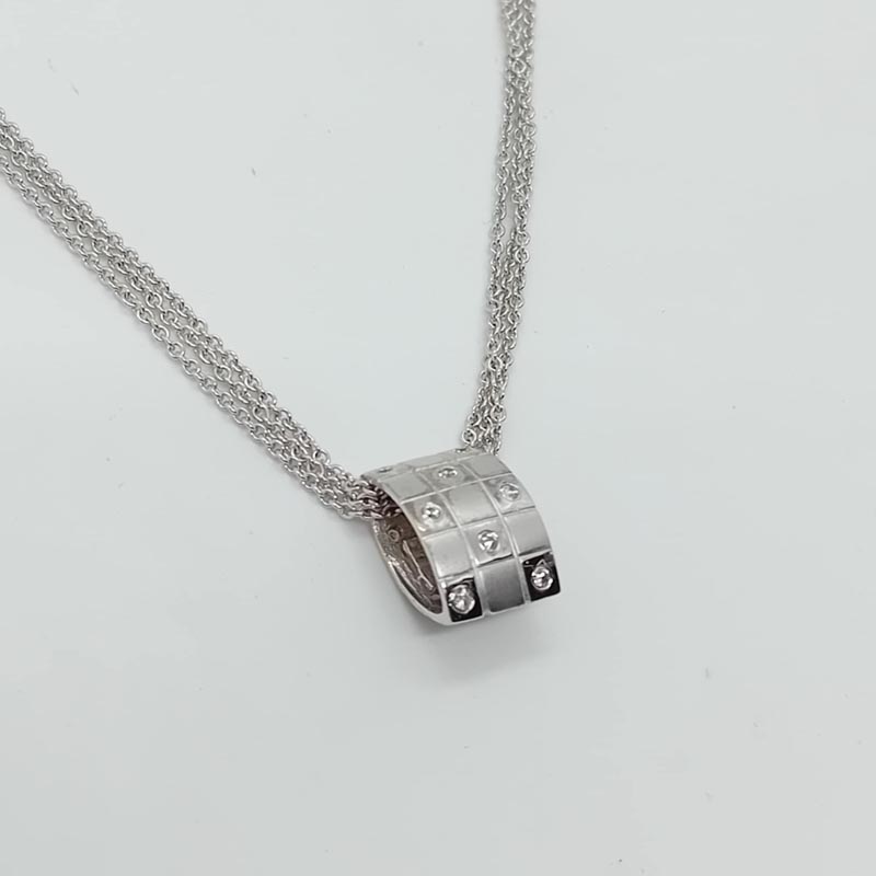 Πολύτιμο και μοναδικό όσο εσείς! Ιδανικό για νυφικό κόσμημα αυτό το κολιέ από λευκόχρυσο 14 ΚΑΡΑΤΙΩΝ, σε γεωμετρικό design παραλληλόγραμμο, διπλής όψης, με 15 ευδιάκριτα λευκά ζιργκόν, με εναλλαγές λουστρέ και ματ επιφάνειες , τριπλή σειρά αλυσίδα και μεγάλο ασφαλές κούμπωμα.
