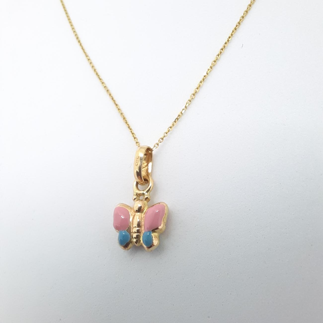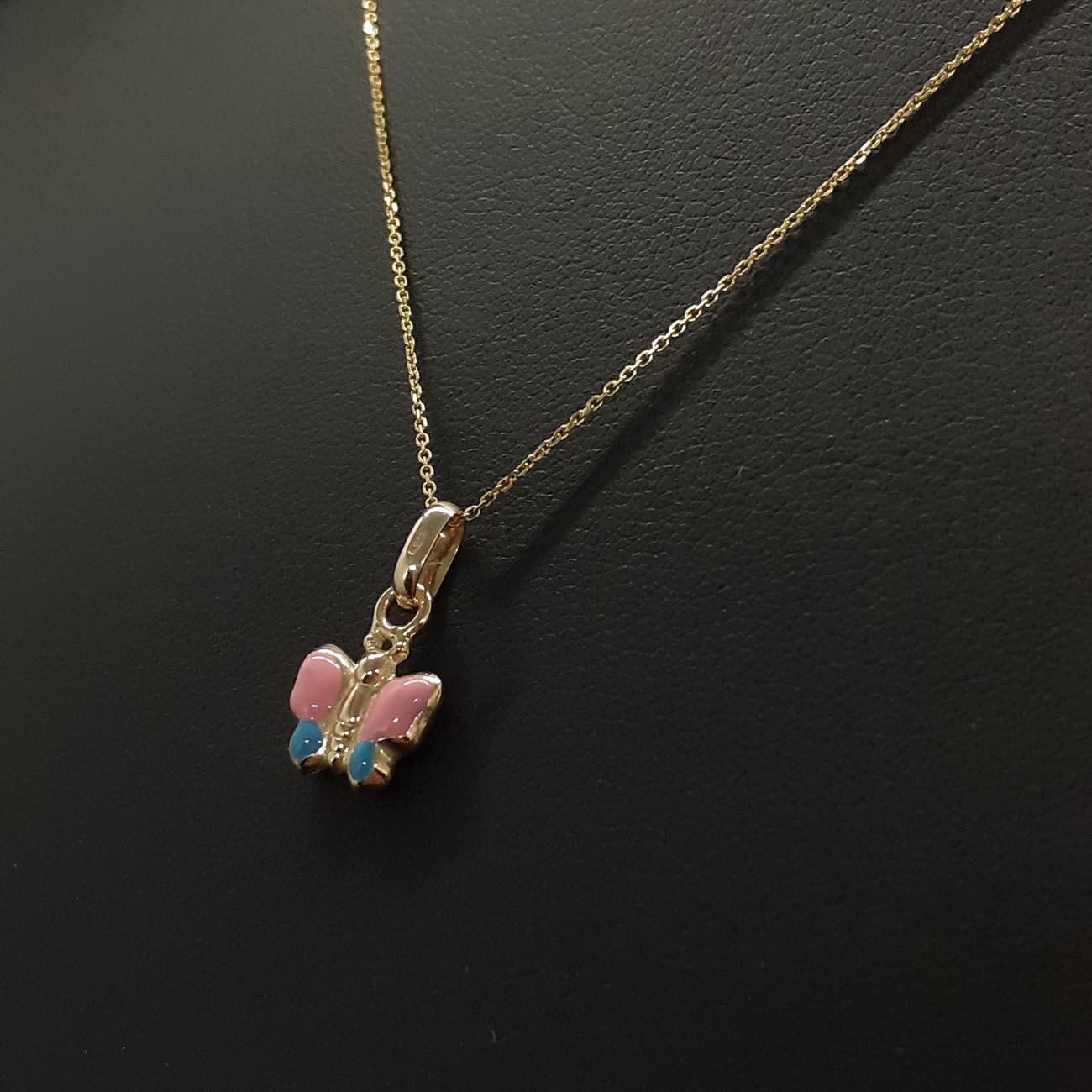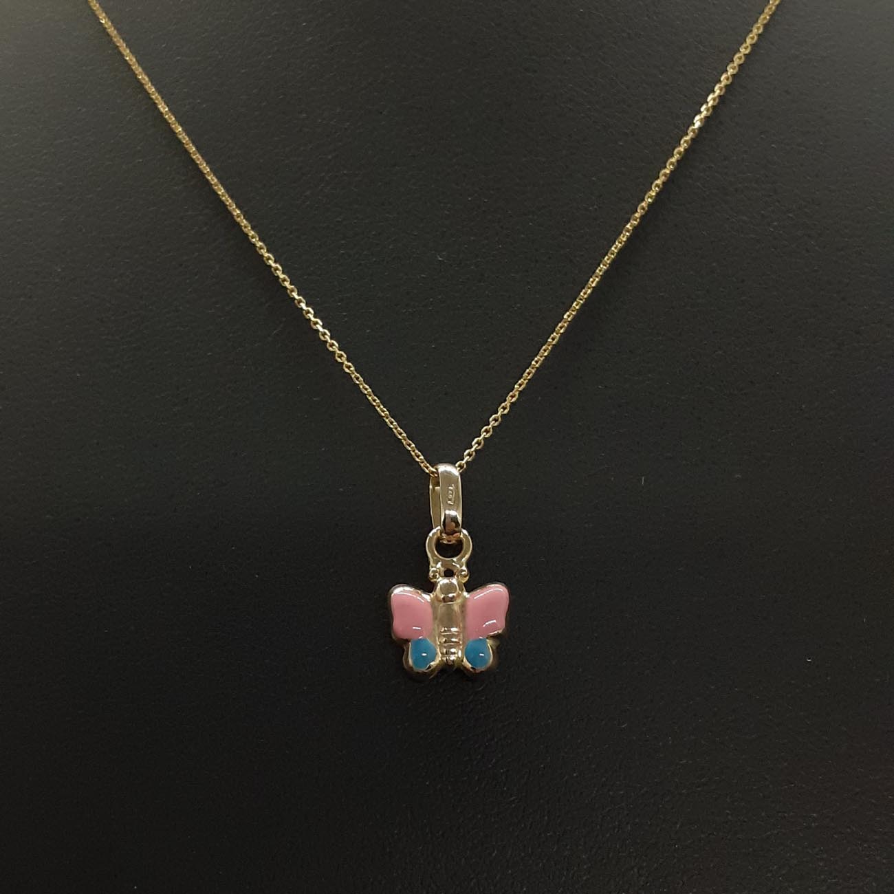 Μια ωραία πεταλούδα από χρυσό Κ9 και σμάλτο κοσμεί αυτό το υπέροχο κολιέ που ξυπνά τρυφερά συναισθήματα σε κάθε γυναίκα κάθε ηλικιακής ομάδας!