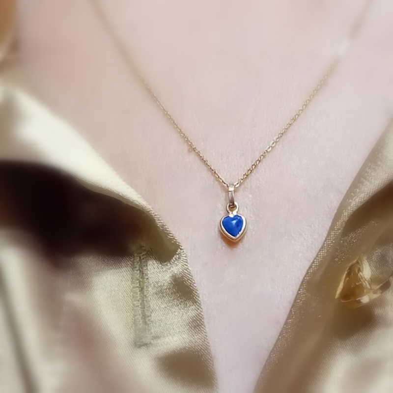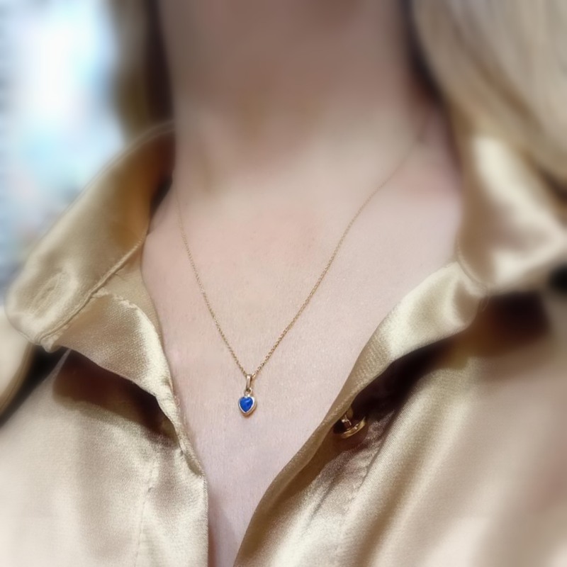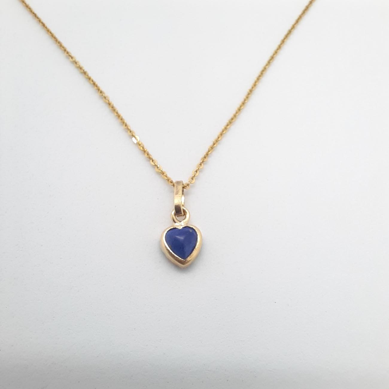 Χρυσό κολιέ K9 καρδιά λάπις λάζουλι