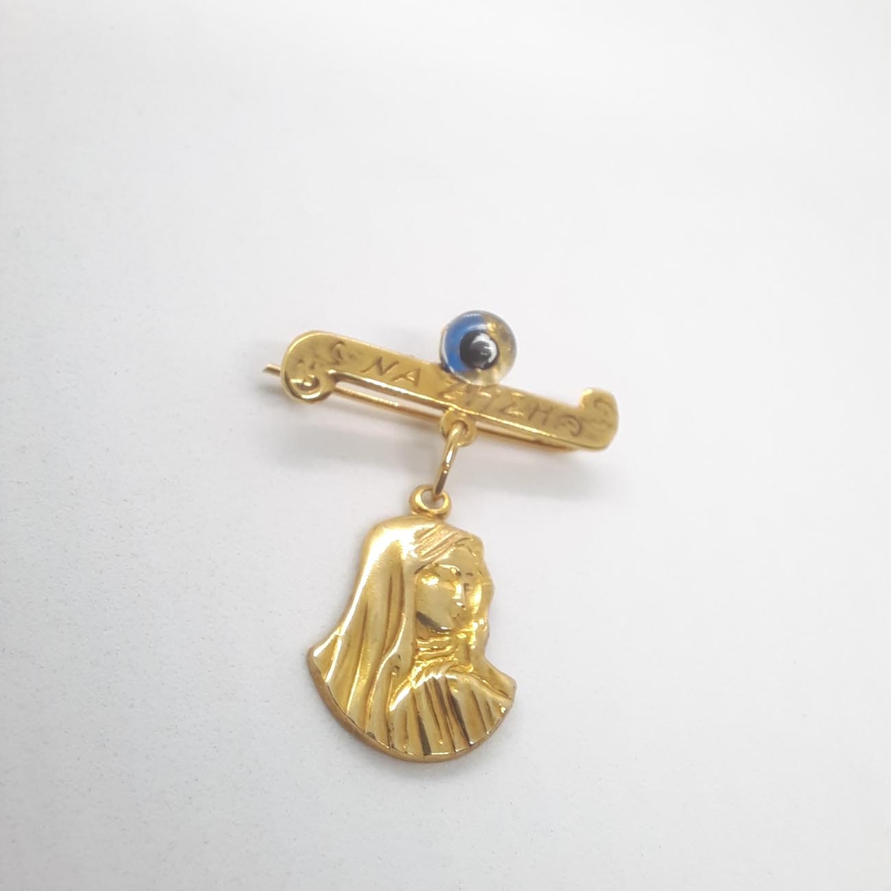 Ευλογία από την Παναγία ας έχει το νεογέννητο μωράκι και απόλυτη προστασία από κάθε κακό με χρυσό ματόχαντρο καράτια 14 με ανάγλυφη μορφή Παναγίας.