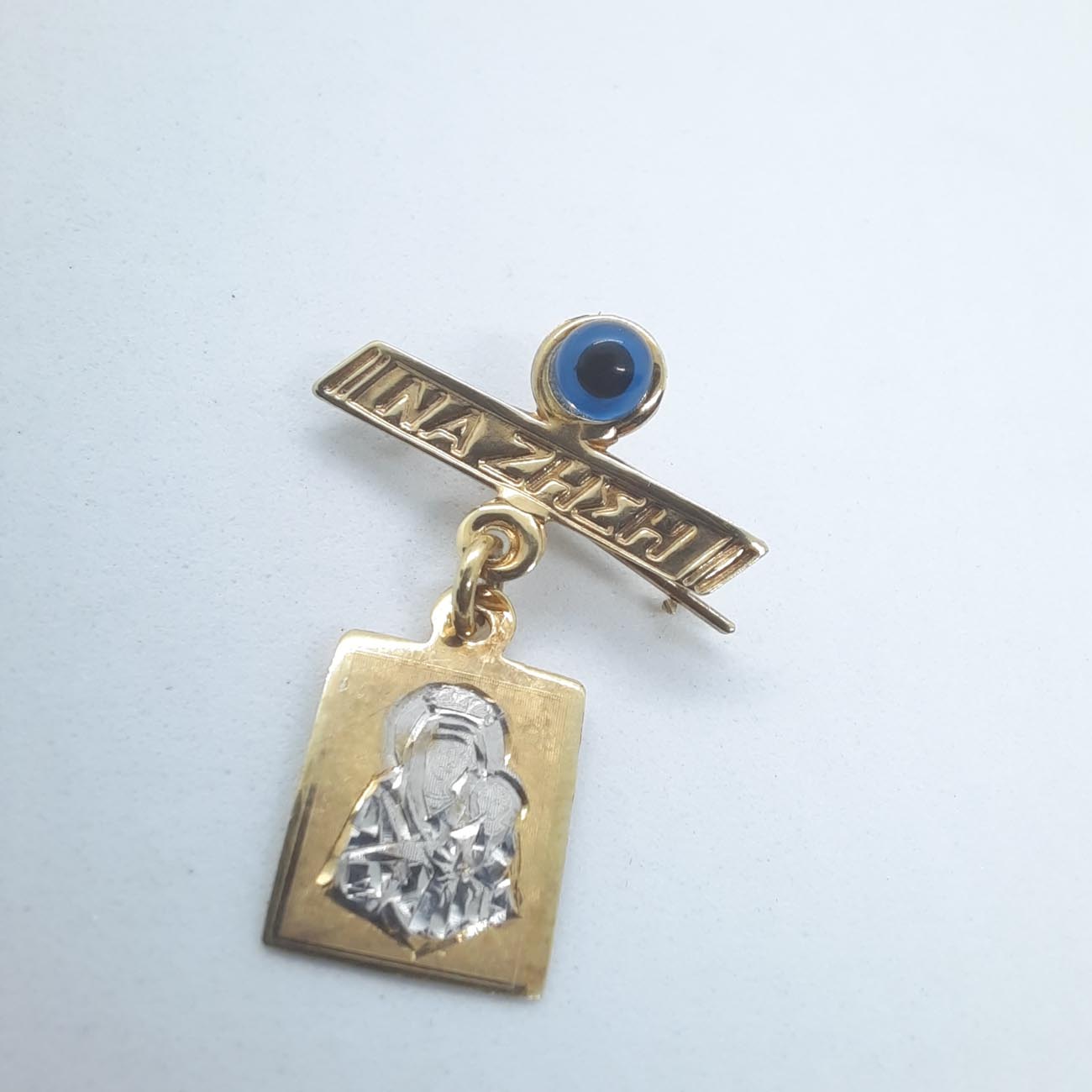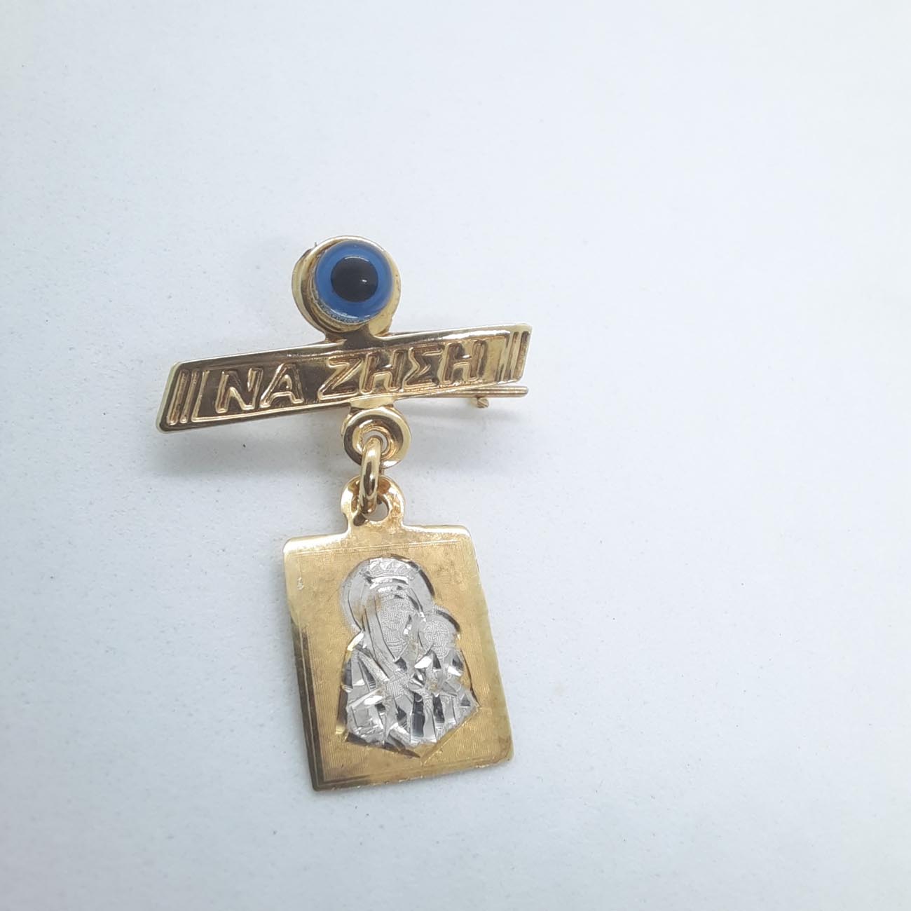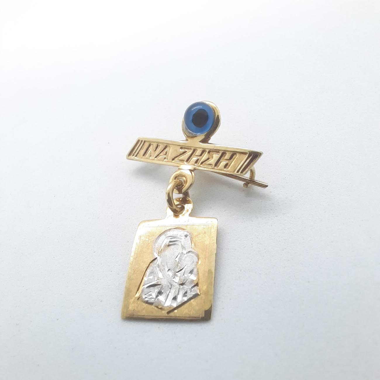 Δώρο προστασίας και ευλογίας για το μωρόο σας, χρυσό φυλαχτό 9 καρατίων με Παναγία, ματάκι και ευχή. ΒΑΡΟΣ: 1.1 gr