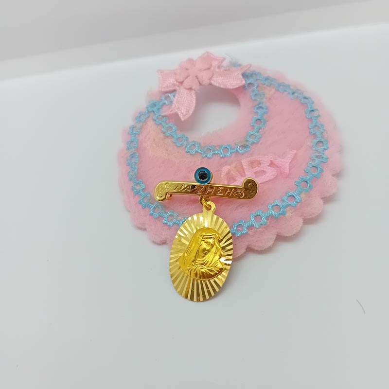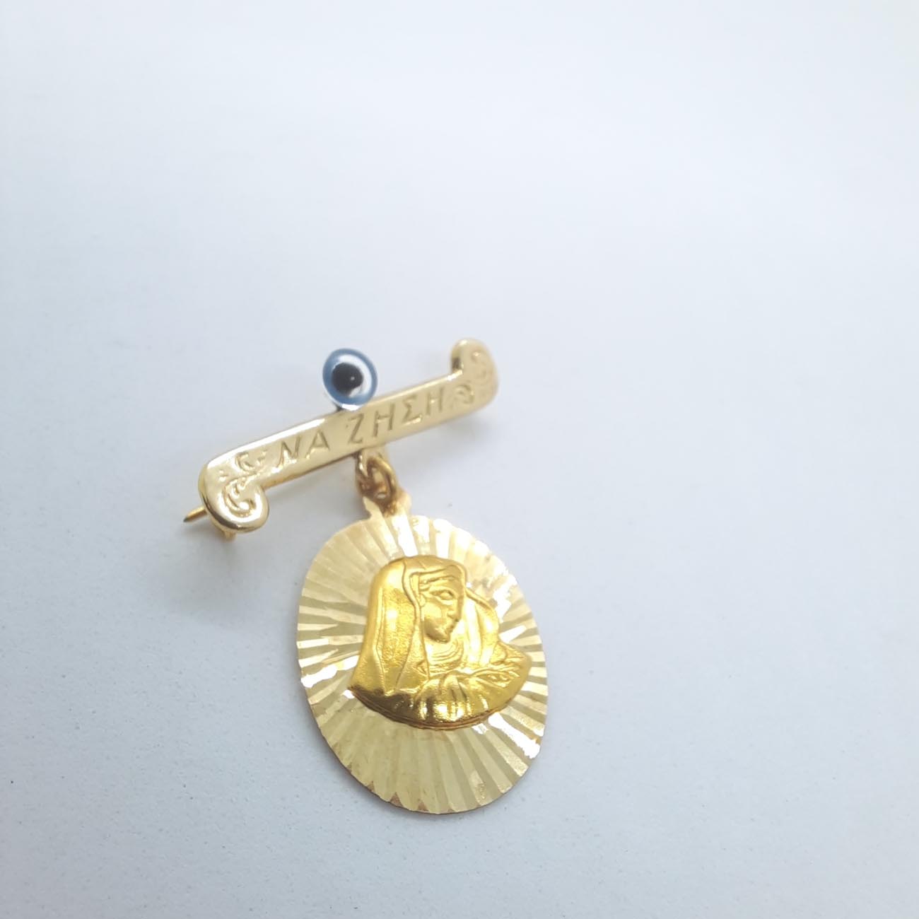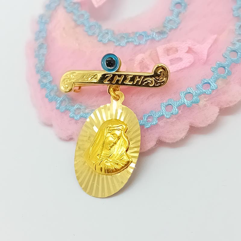 Επειδή το μωράκι σας είναι πολύτιμο , χαρίστε του ένα πολύτιμο χρυσό φυλακτό 14 καρατίων με σκαλιστή Παναγία, ματάκι και ευχή για ευλογία και θεϊκή προστασία.