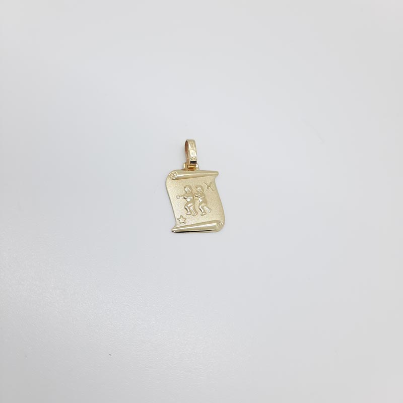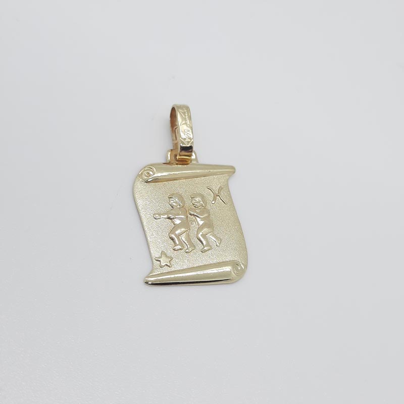 Ζώδιο ΔΙΔΥΜΟΙ σε μενταγιόν πάπυρο από χρυσό Κ14, ζαγρέ επιφάνεια, λουστρέ ανάγλυφες λεπτομέρειες.