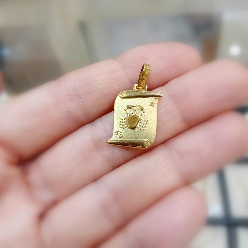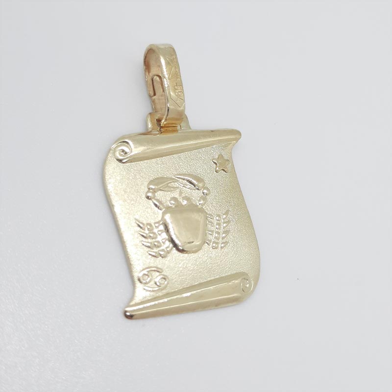 Χρυσός πάπυρος με ανάγλυφο λουστρέ ζώδιο "ΚΑΡΚΙΝΟΣ" σε ζαγρέ επιφάνεια, από χρυσό 14 ΚΑΡΑΤΙΩΝ. Ιδανικό πολύτιμο απόκτημα για τα ευαίσθητα & ρομαντικά καρκινάκια!