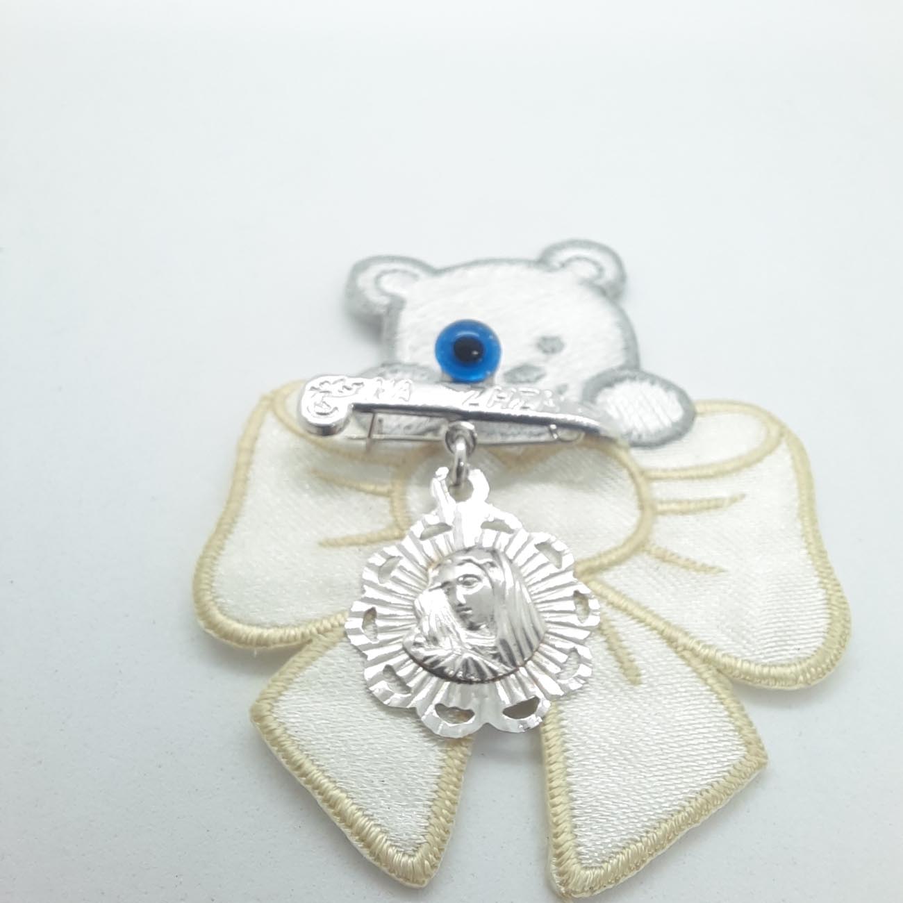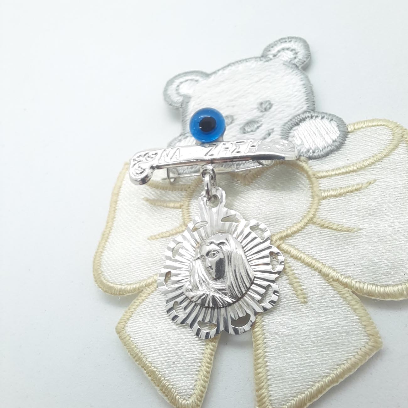 Ανάγλυφη μορφή Παναγίας σε λευκόχρυσο σκαλιστό ματόχαντρο 14 ΚΑΡΑΤΙΩΝ, με παραμάνα, ευχή και μαντόχαντρο, που θα αξιοποιήσει ως πολύτιμο μενταγιόν στην ενήλικη ζωή του.