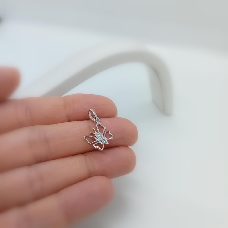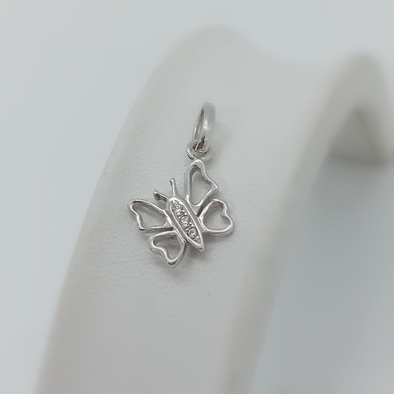 Μια υπέροχη πεταλούδα από λευκόχρυσο 14 καράτια και διακριτικά λευκά ζιργκόν,ιδανικό δώρο για την μαμά αλλά και για την κορούλα!