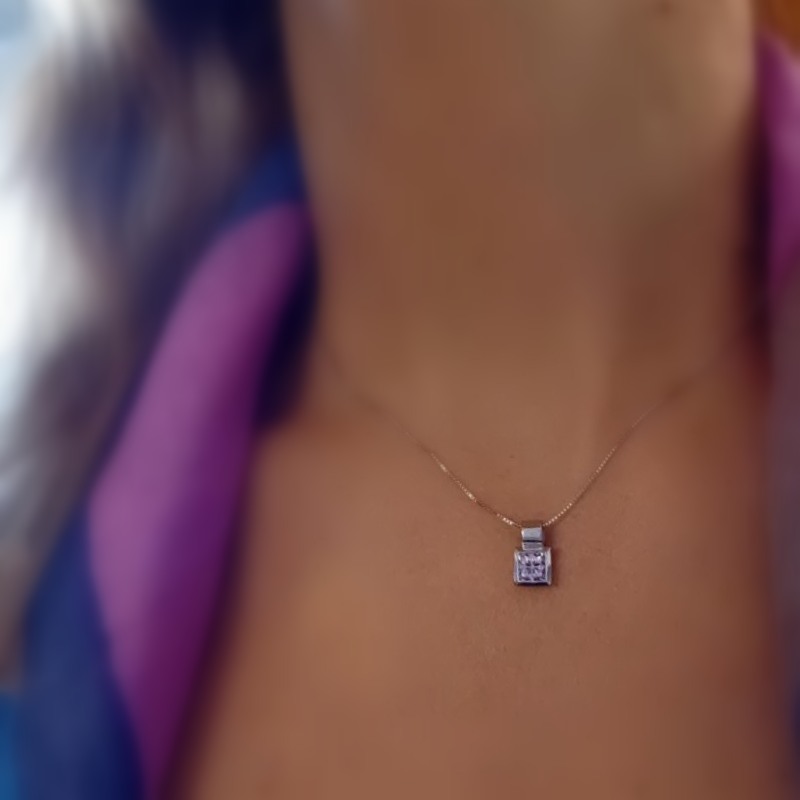Δυναμικό μενταγιόν από λευκόχρυσο 14 καράτια, με ζιργκόν σε απόχρωση λιλά-μωβ, με γεωμετρικό minimal design. Ιδιαίτερα μοντέρνο κόσμημα που φοριέται πρωί-βράδυ ! ( ΠΡΟΣΟΧΗ: ΔΕΝ ΠΕΡΙΛΑΜΒΑΝΕΙ ΑΛΥΣΙΔΑ)