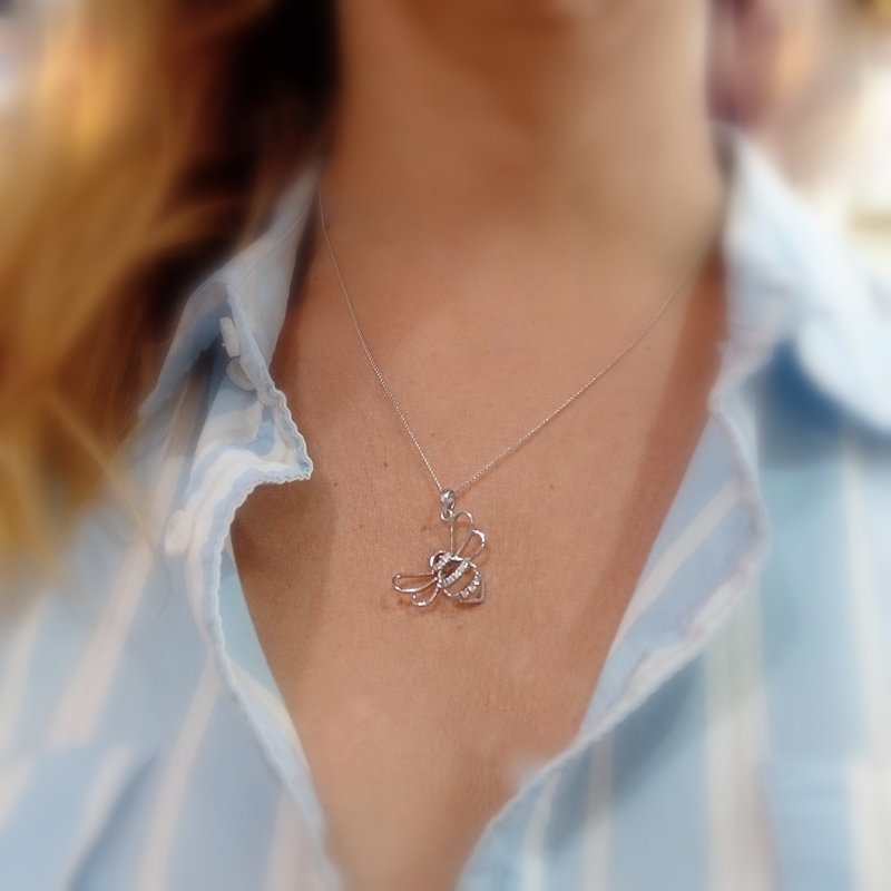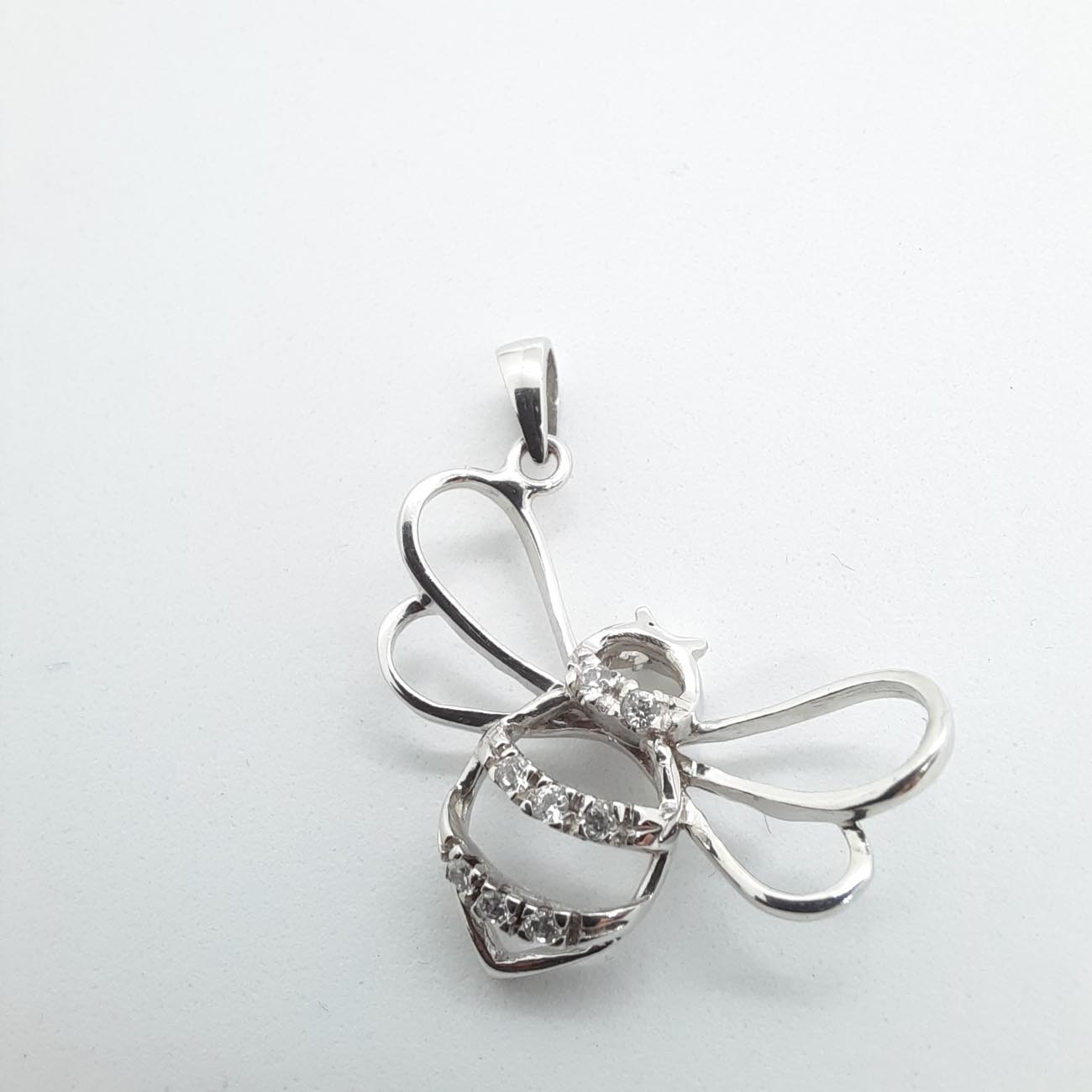 Με υπέροχες λεπτομέρειες μεγάλο πλούσιο μενταγιόν , μια λευκόχρυση μελισσούλα, σύμβολο γονιμότητας, από χρυσό 14 καρατίων, με λευκά ζιργκόν. (ΠΡΟΣΟΧΗ: δεν περιλαμβάνει αλυσίδα, η φωτογράφιση έγινε με αλυσίδα ώστε να μπορείτε να καταλάβετε το μέγεθος του μενταγιόν)