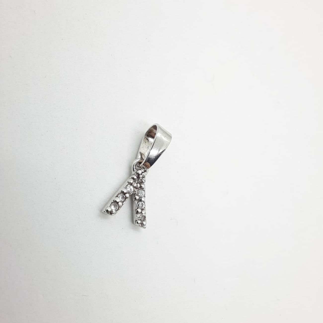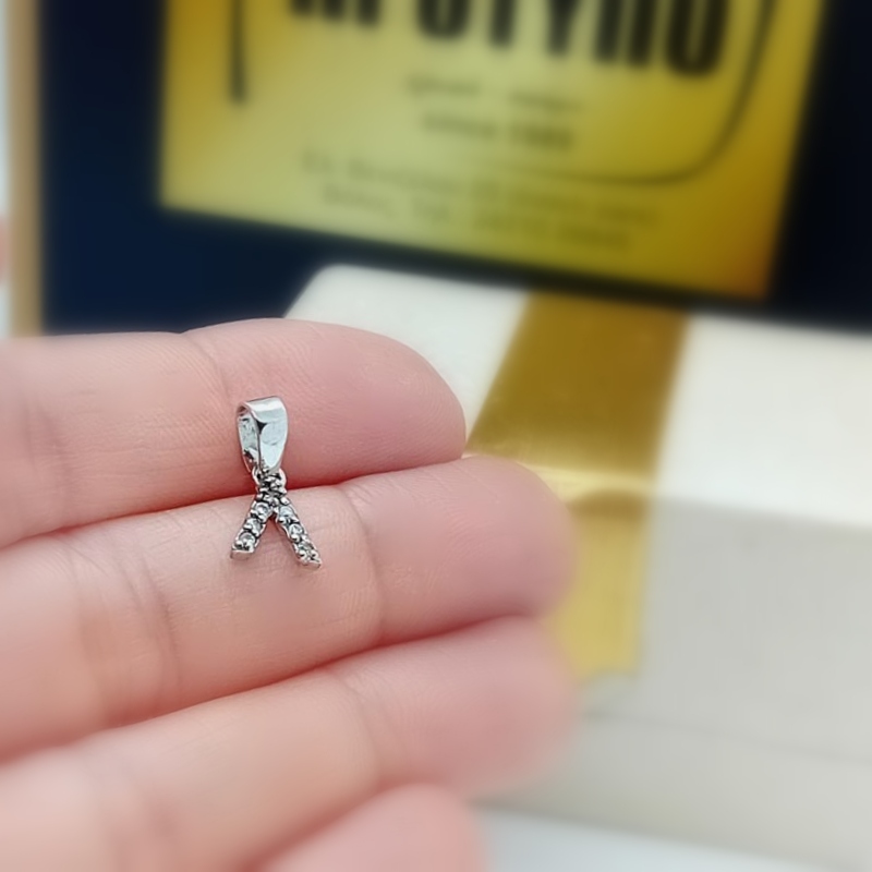 Κομψό και διακριτικό μενταγιόν μονόγραμμα από ασήμι με λευκά ζιργκόν! Φοριέται άνετα από μικρά κοριτσάκια, νεαρές δεσποινίδες, μεγάλες κυρίες!
