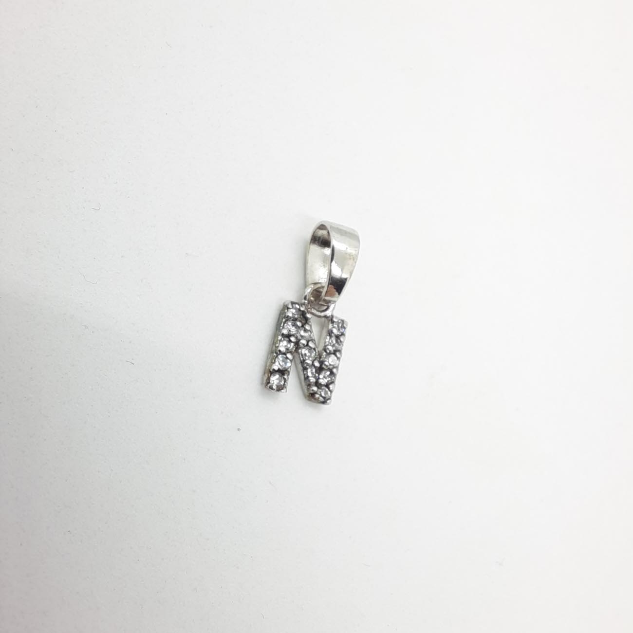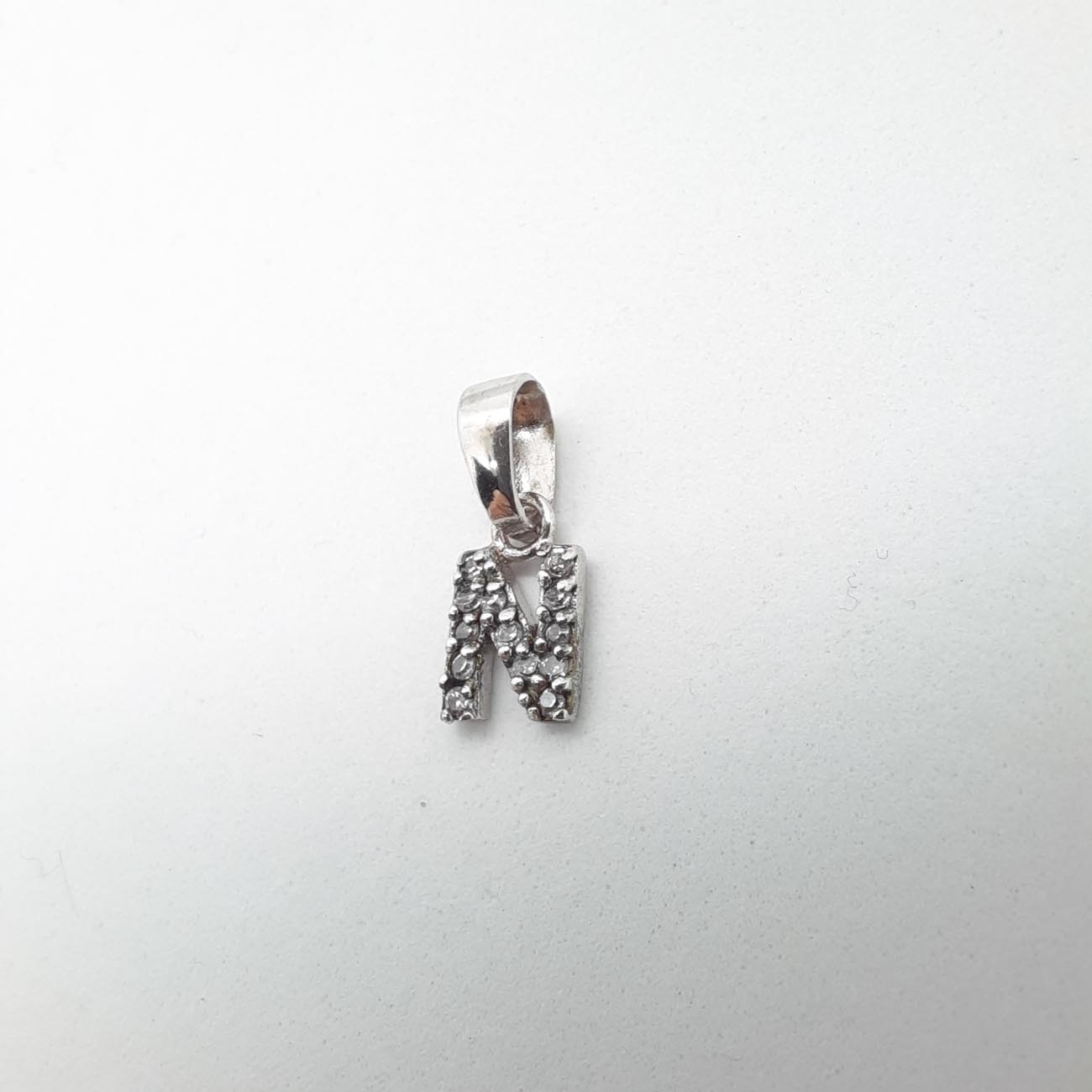 Μονόγραμμα λαμπερό από ασήμι και ζιργκόν σε διακριτικό μέγεθος.