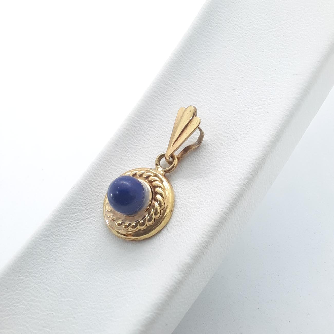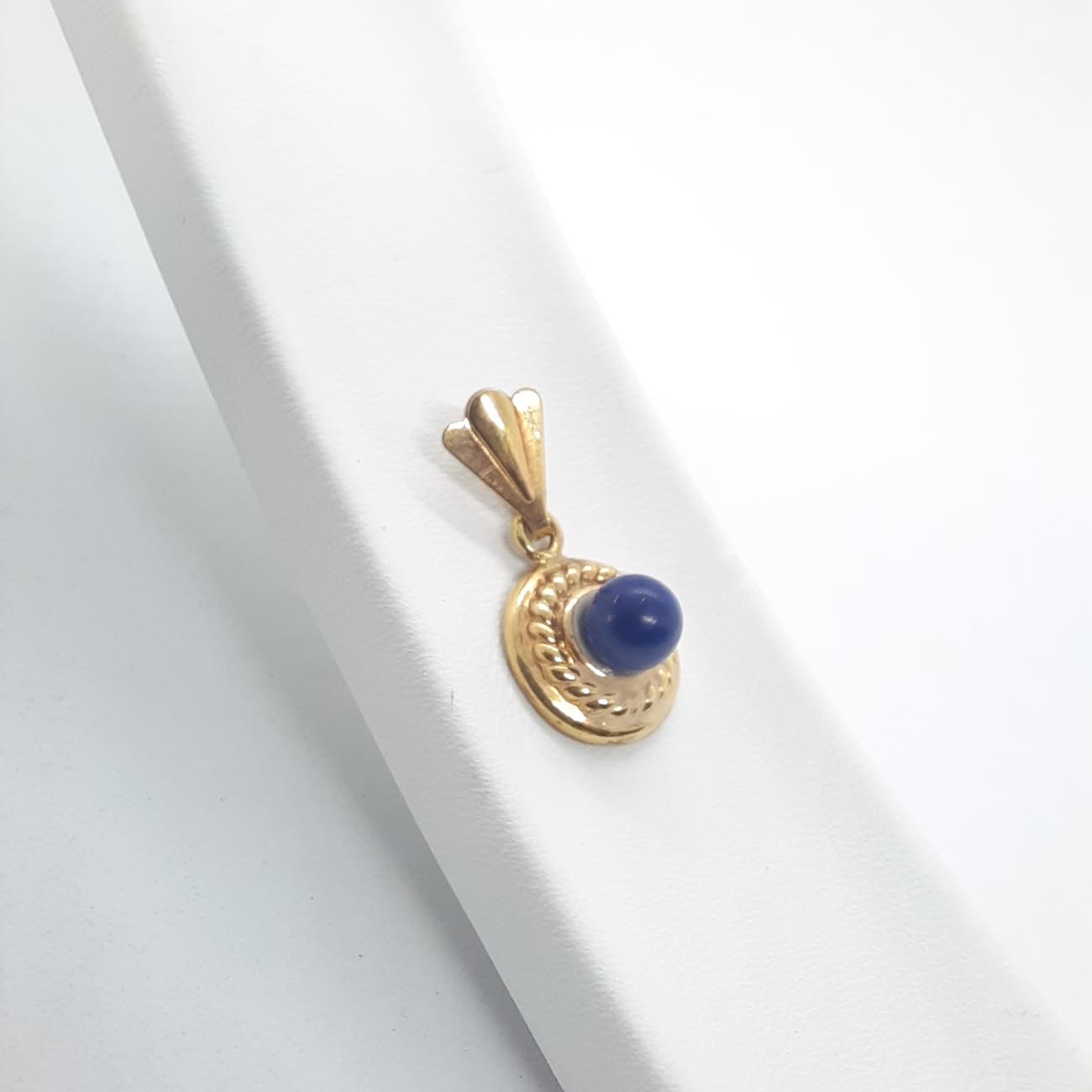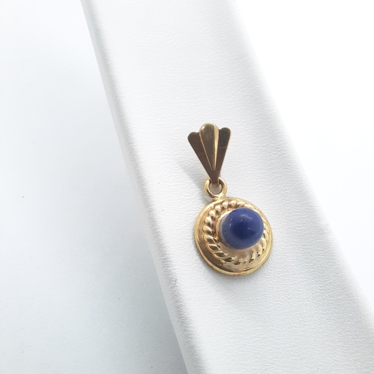 Χρυσό βυζαντινό μενταγιόν, με κεντρικό ημιπολύτιμο λίθο λάπις λάζουλι, γνωστό από την αρχαιότητα για τις θεραπευτικές του ιδιότητες σε νοητικά ζητήματα, σε κλασικό στρογυλό design, 14 καράτια, με χαρακτηριστικό κρίκο , υπέροχο σκάλισμα, διαχρονικής αξίας.