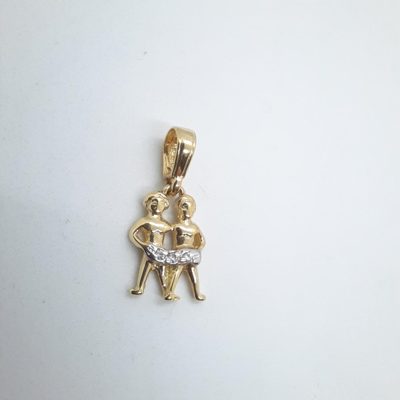 Δίδυμος, κοινωνικός, ευχάριστος και απρόβλεπτος! Του αξίζει ένα πολύτιμο μενταγιόν από χρυσό 14 καρατίων με ανάγλυφες λεπτομέρειες και διακριτικά λευκά ζιργκόν.