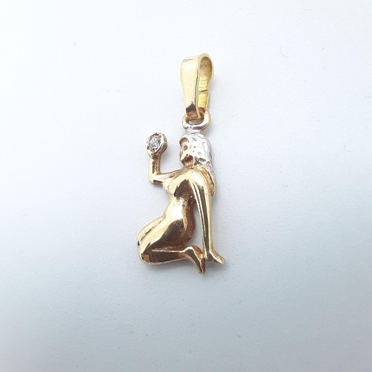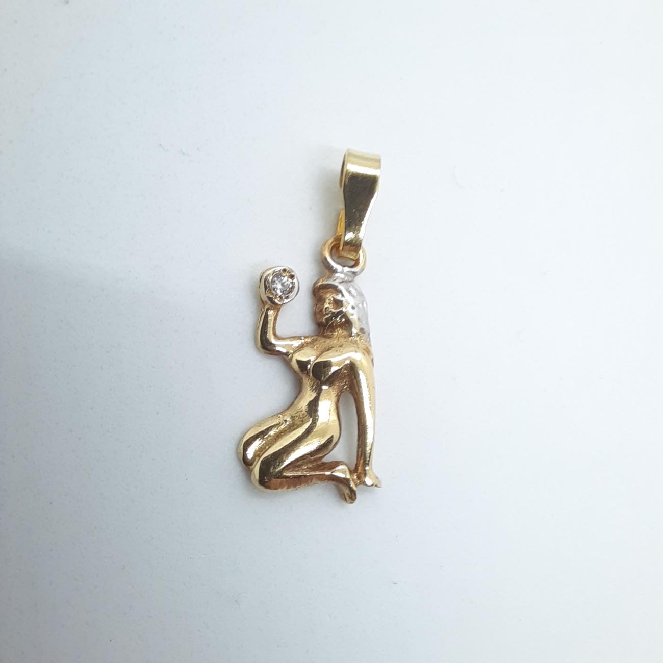 Χρυσό ζώδιο Παρθένος με ανάγλυφες ρεαλιστικές λεπτομέρειες, μια καλλίγραμμη γυναίκα με λευκό μικρό ζιργκόν, ένα ιδιαίτερα θηλυκό κόσμημα από χρυσό 14 καρατίων.