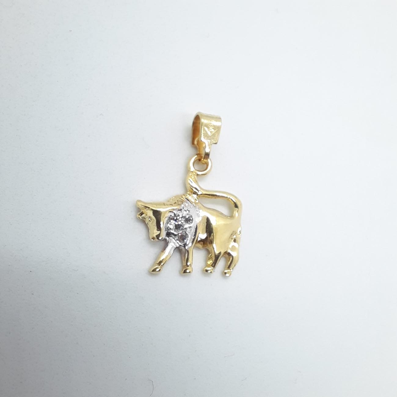Ταύρος! Προσγειωμένος, αξιόπιστος και εκτιμά τα όμορφα πράγματα! Να ένας καλός λόγος να αποκτήσει αυτό το εντυπωσιακό χρυσό ζώδιο 14 καρατίων, με υπέροχο σκάλισμα, ανάγλυφες λεπτομέρειες και λευκά ζιργκόν.