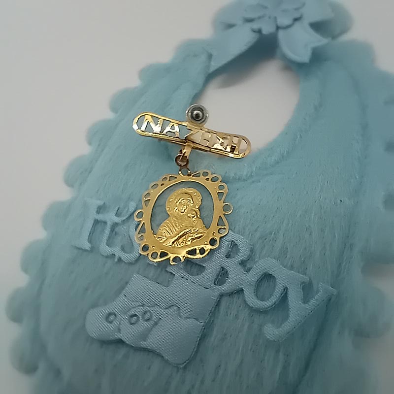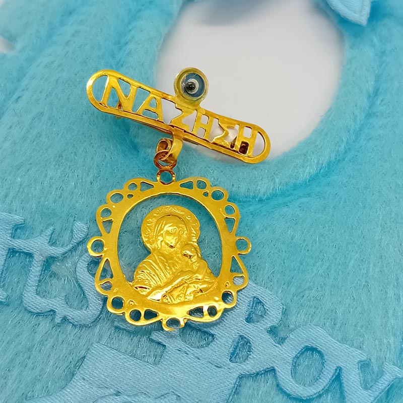 Ευλογημένο από την Παναγίτσα ας είναι το μωράκι σας! Προστατέψτε το από κακό βασκανία και ασθένεια με χρυσό 14 καρατίων φυλακτό κούνιας με ευχή και μορφή Παναγίας . ΒΑΡΟΣ 1,7gr