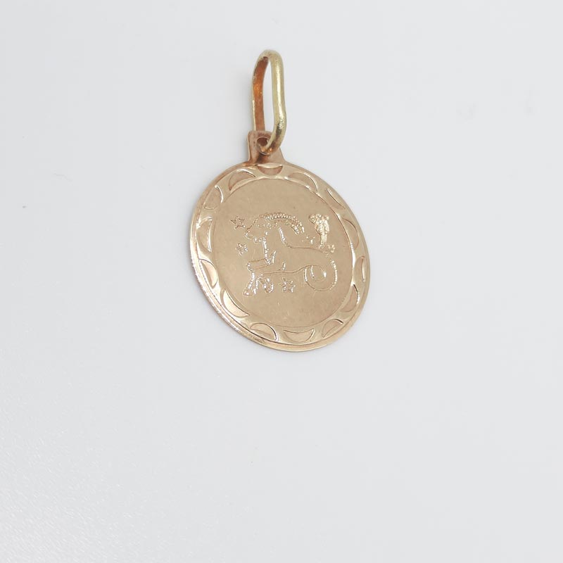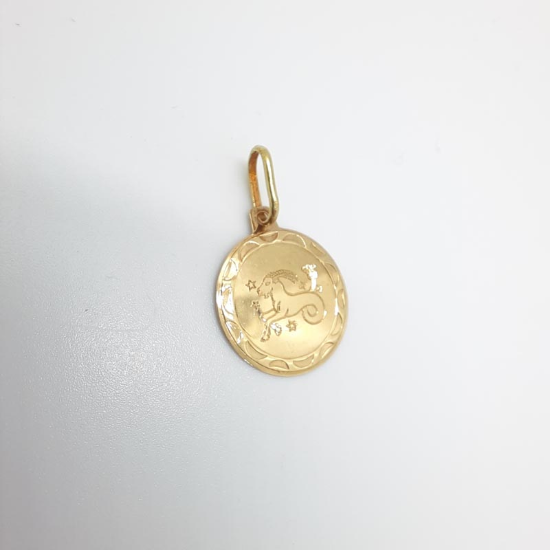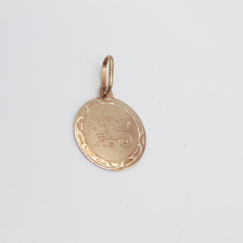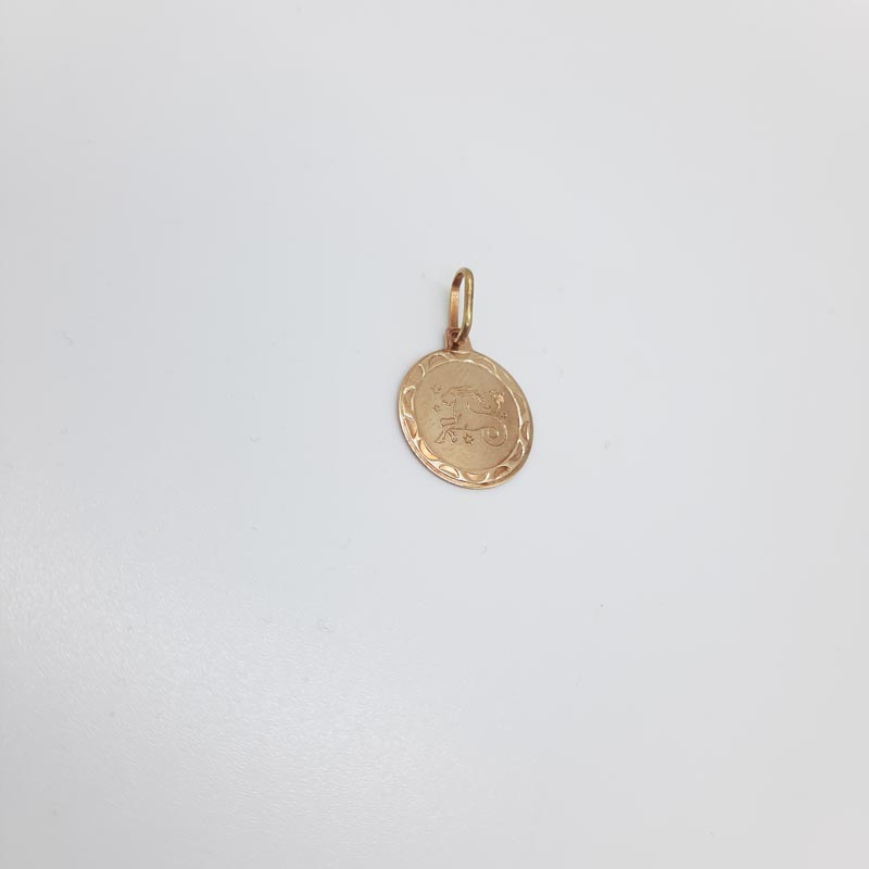 Χρυσό μενταγιόν σε στρογγυλό design με χαραγμένο ΑΙΓΟΚΕΡΩ, ελαφρύ και διακριτικό μέγεθος.