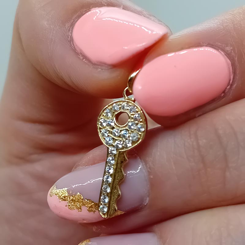 Χρυσό κλειδί μενταγιόν με ζιργκόν Κ14