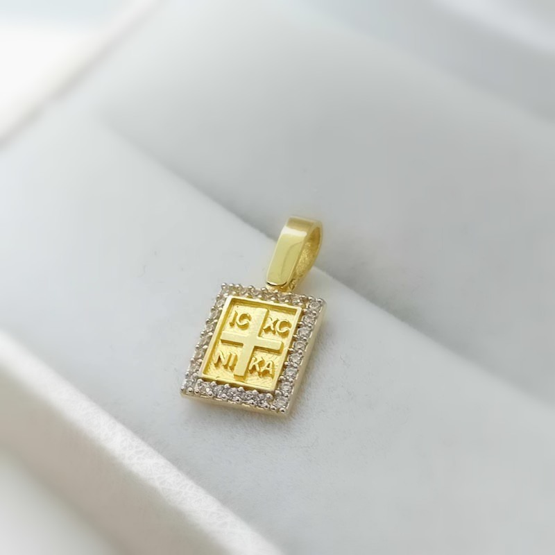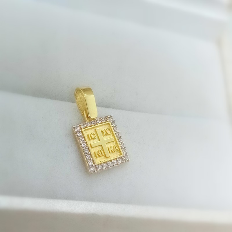 Ένα πανέμορφο νεανικό κόσμημα για τον λαιμό σας, μενταγιόν σε ορθογώνιο design με σταυρό, διακριτικό μέγεθος, με κεντρικό σταυρουδάκι , περιστοιχισμένο από μικρά αστραφτερά ζιργκόν, με μεγάλο κρικάκι, από ΧΡΥΣΟ 9 καράτια.